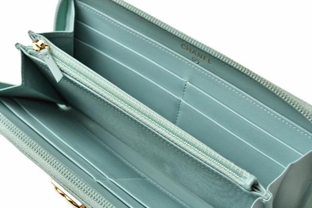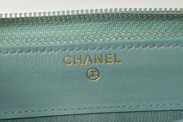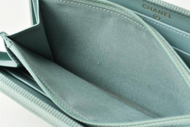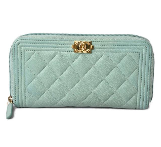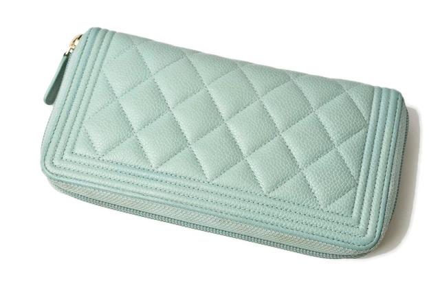 CHANEL 長財布 ボーイシャネル キャビアスキン ミントグリーン ゴールド