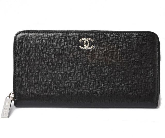CHANEL 長財布/ラウンドファスナー ミニキャビアスキン セブルガ ブラック/シルバー金具