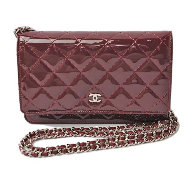 Pre-owned Chanel long wallet/chain wallet/shoulder bag, CHANEL A33814, patent leather, PRUNE.