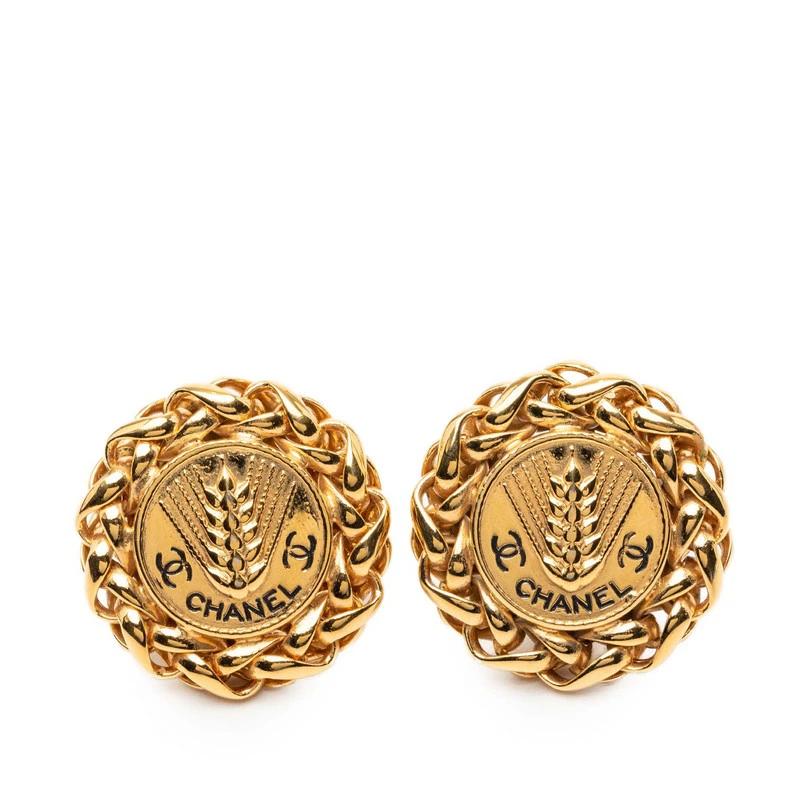- シャネル 麦 稲穂 ココマーク ロゴ イヤリング ゴールド メッキ レディース CHANEL 【中古】