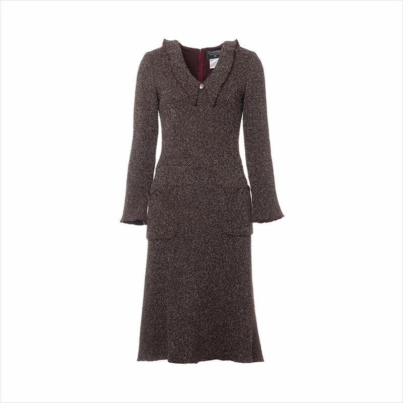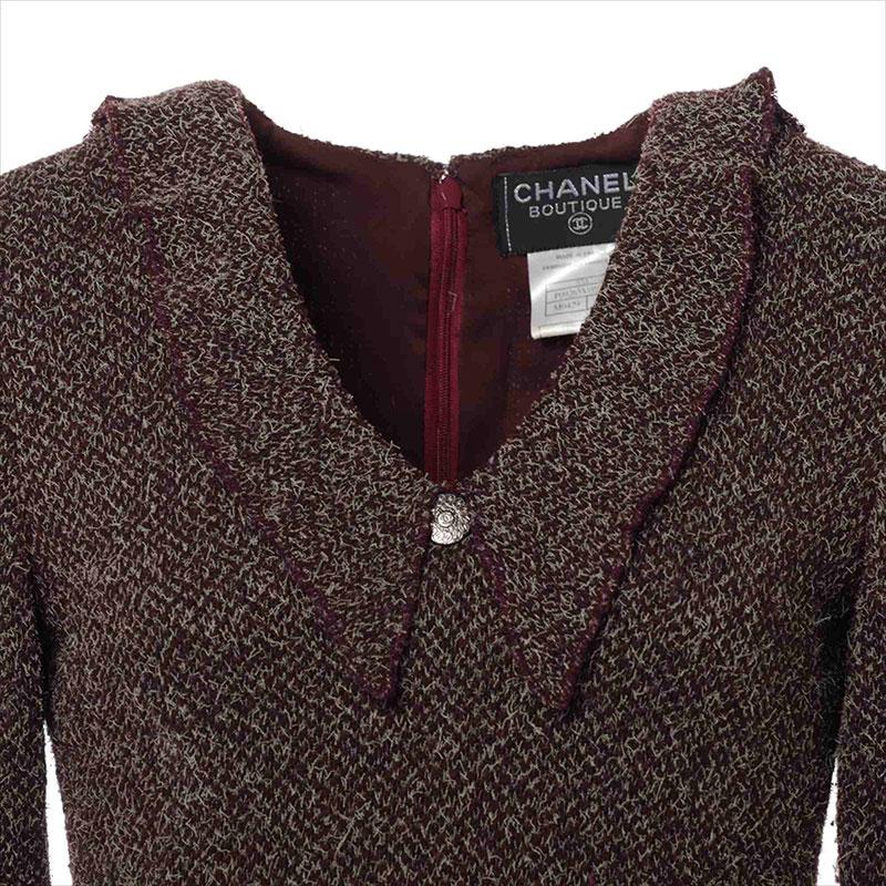 Pre-owned Chanel Coco Button 97A Wool and Nylon Dress (P09265V05806) Khaki WS15103