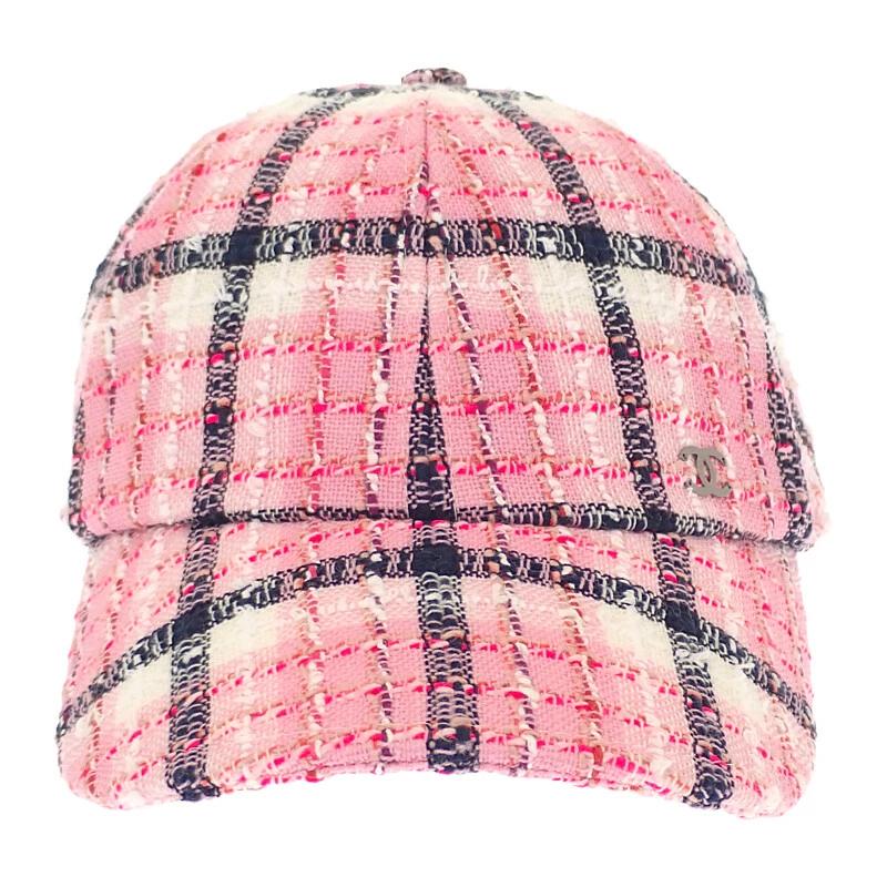 ツイード素材を使用した、フェミニンで華やかなピンクカラーのキャップ。フロントには上品に輝くココマークがあしらわれ、カジュアルスタイルにエレガントな雰囲気を添えます。柔らかなコットン素材が快適な被り心地を提供し、シーズンレスで活躍するラグジュアリーなアイテムです。