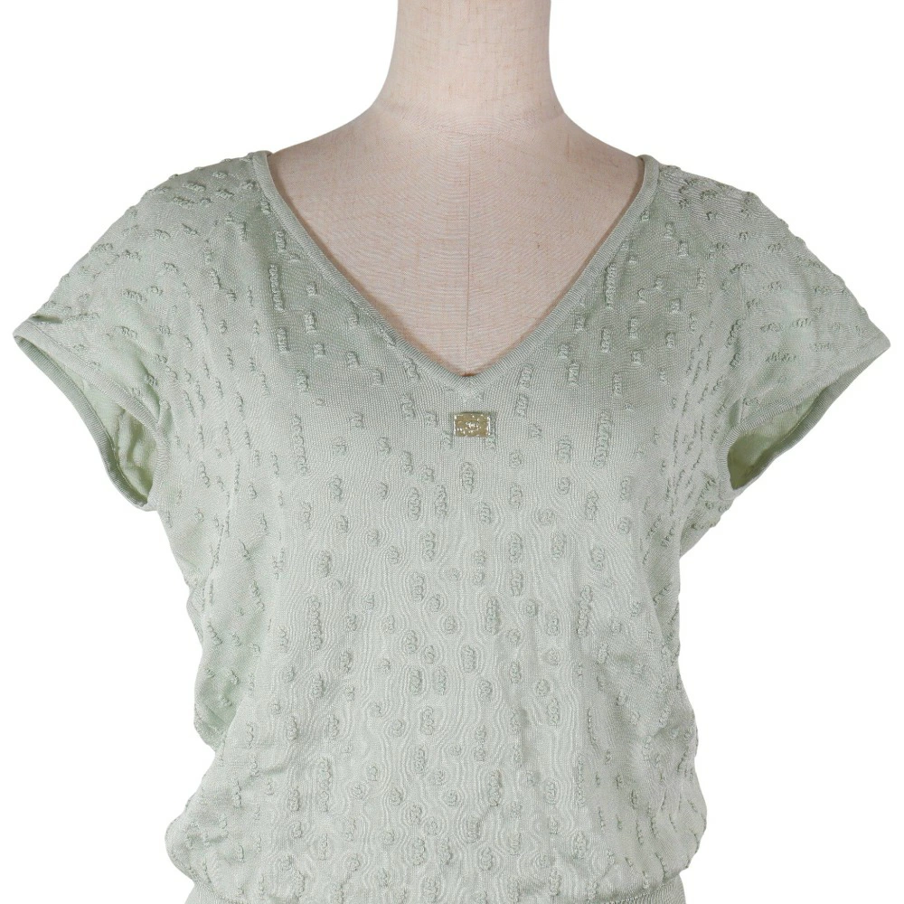 Pre-owned CHANEL COCO Mark Short Sleeve Knit P43857K04517 Rayon Pastel Green COCO Mark Women's Sweater, Rank A
