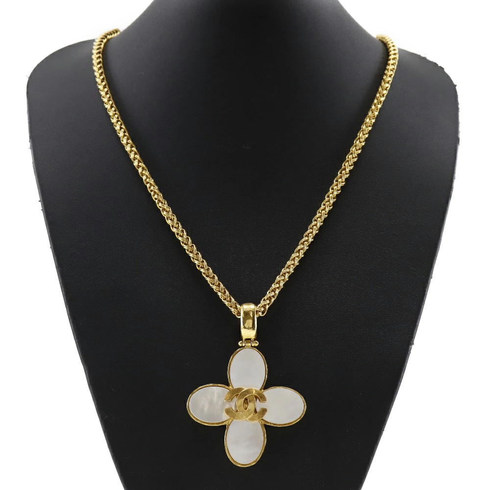 Vintage Chanel Coco Mark Necklace with Flowers, Gold-Plated and Shell, Made in France, 1995, 95A, Flower, Approx. 108g, Women's, Pre-owned, A-Rank