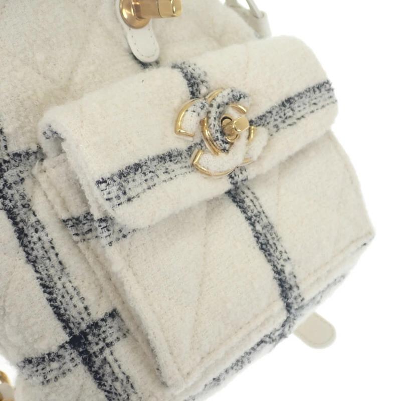 上質なウールツイードはシャネルならではのアイコニックな素材であり、柔らかく温もりのある質感が魅力です。ランダムにあしらわれたココマーク入りのプレートが、モードなアクセントとなり、クラシカルなツイードにモダンなエッジを加えたデザインに仕上がっています。