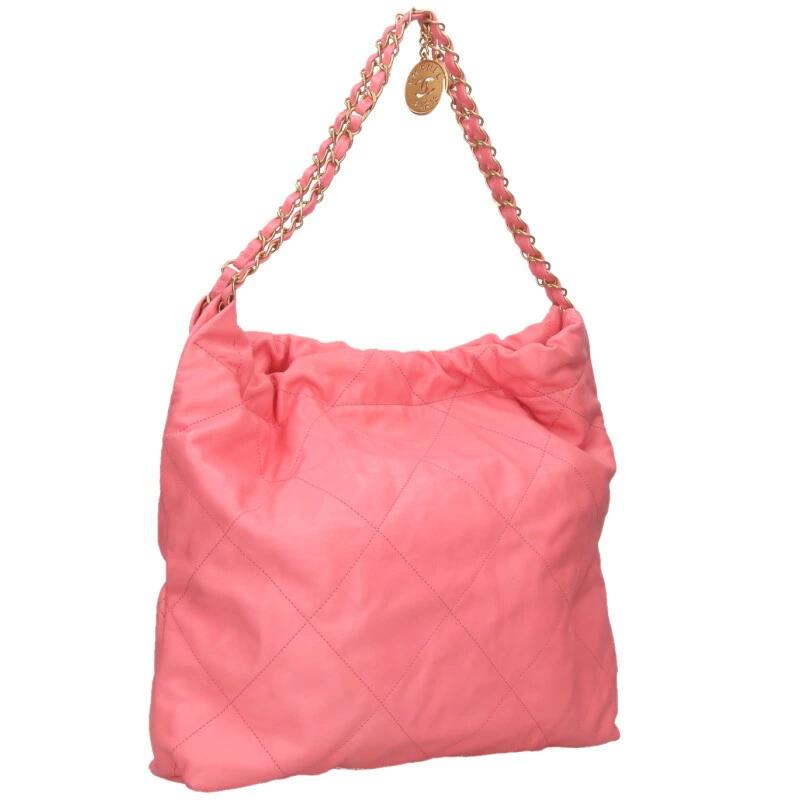 ランク:B (使用感がある商品)状態備考:表面、角等に擦れ、汚れがありますブランド:シャネルサイズ:スモール色:ピンク×ゴールド実寸:横40cm 縦34cm マチ7.5cm 持ち手45cm重さ:-素材:表記なし付属品:なしその他特徴:-管理番号:15051-251028-0328