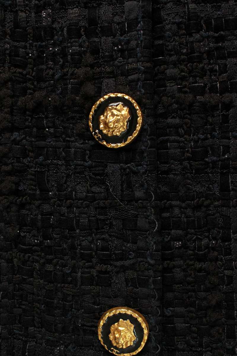 ランク:B (使用感がある商品)状態備考:第4ボタン下に生地つれがあります袖先裏に若干の汚れがありますブランド:シャネルサイズ:34色:ブラック×ゴールド実寸:肩幅36.5cm 身幅42.5cm 着丈55.5cm 袖丈60cm重さ:-素材:(表地) コットン35%、ビスコース31%、ポリアミド22%、シルク7%、ポリエステル5% (裏地) シルク付属品:なしその他特徴:-管理番号:50211-251108-0344