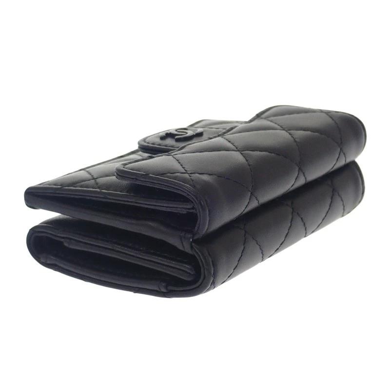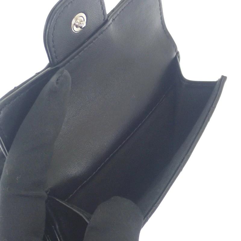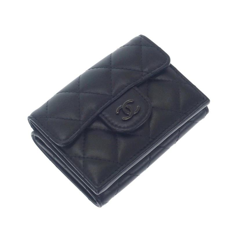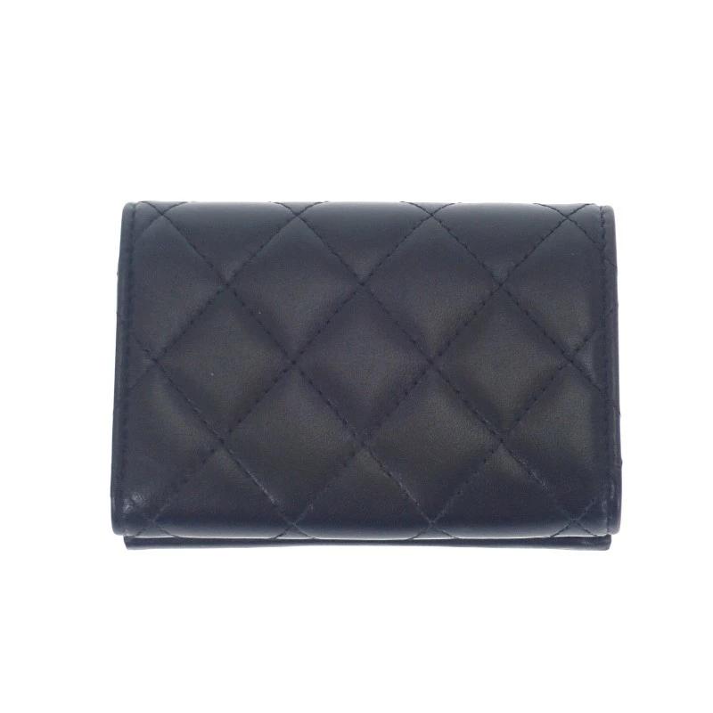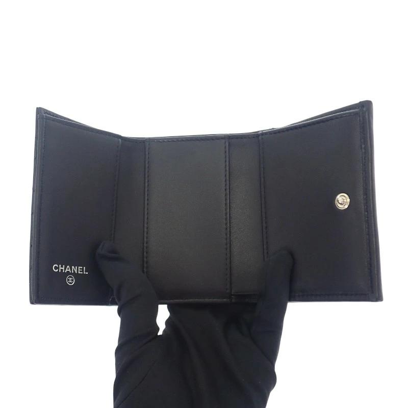 しなやかなラムスキンに、金具までブラックで統一したソーブラック仕様が、洗練されたモード感を演出します。フロントにあしらわれたココマークが控えめながらも確かな存在感を放ち、三つ折りタイプのコンパクトな設計で高い収納力を実現。美しさと実用性を兼ね備えた、長く愛用できる名品ウォレットです。