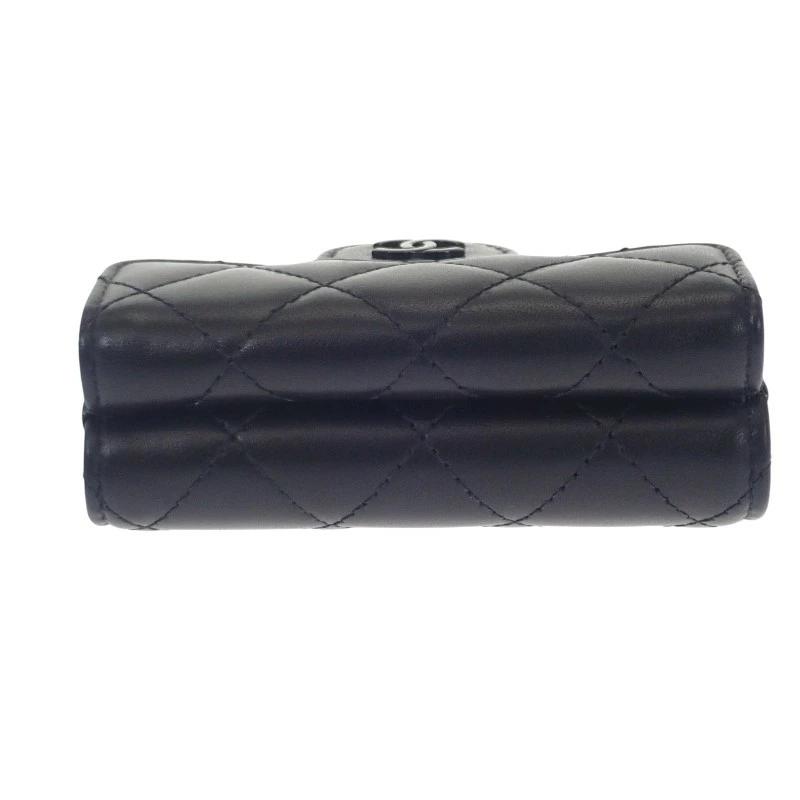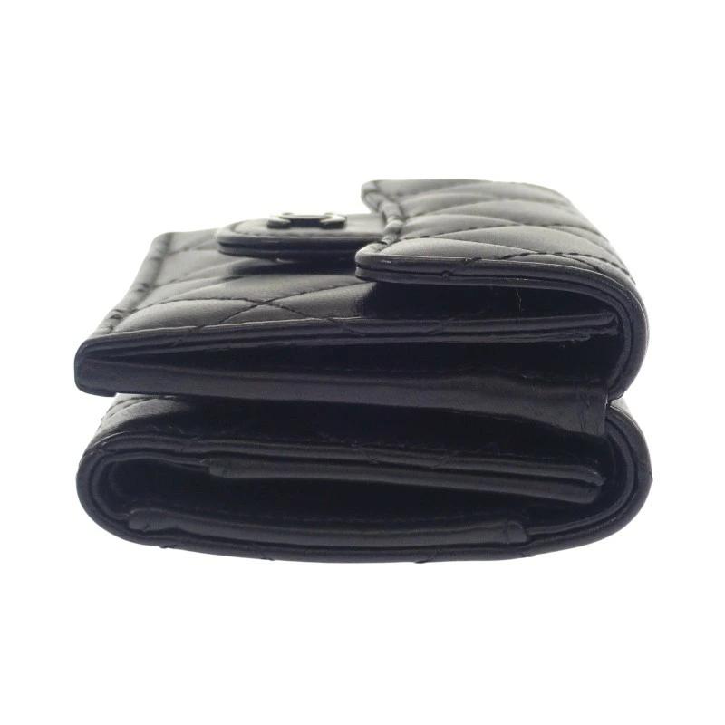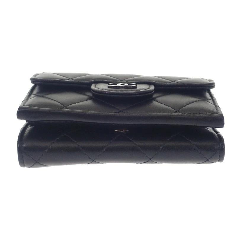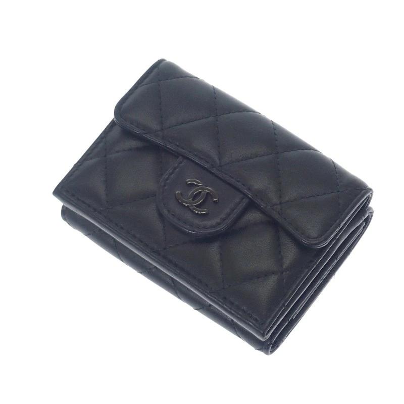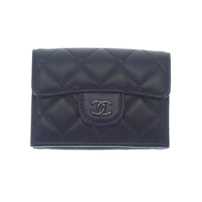 しなやかなラムスキンに、金具までブラックで統一したソーブラック仕様が、洗練されたモード感を演出します。フロントにあしらわれたココマークが控えめながらも確かな存在感を放ち、三つ折りタイプのコンパクトな設計で高い収納力を実現。美しさと実用性を兼ね備えた、長く愛用できる名品ウォレットです。