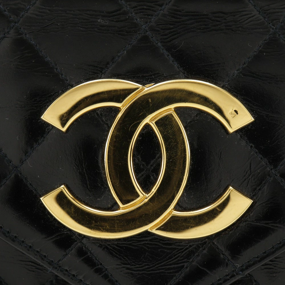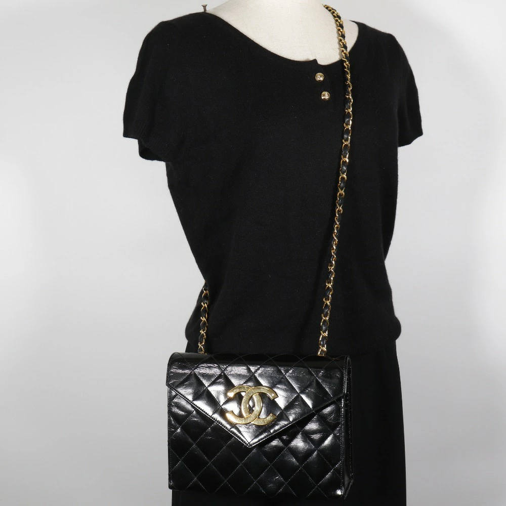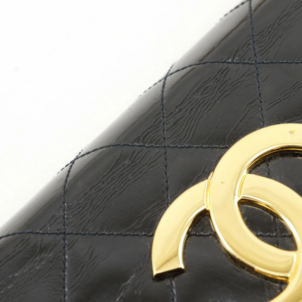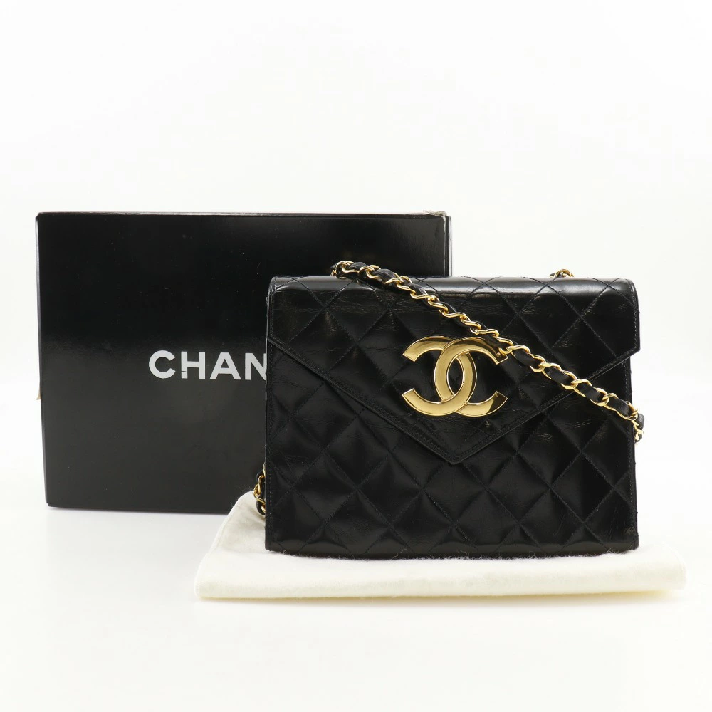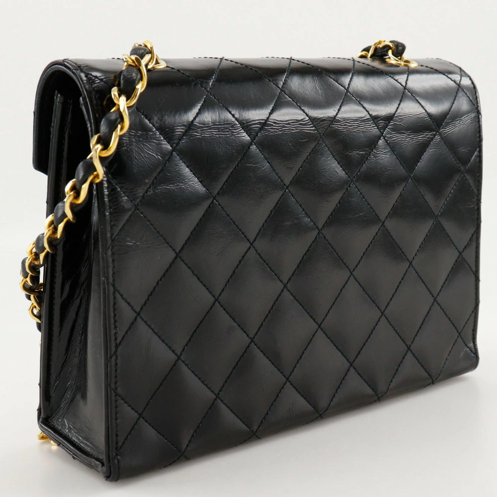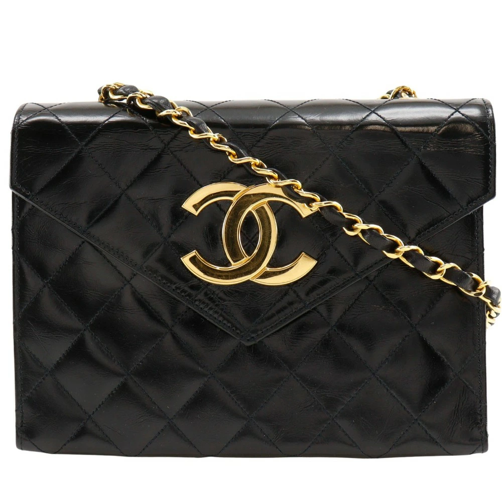 Pre-owned CHANEL Deca Coco Matelasse Chain Shoulder Bag, Vintage Enamel, Made in France, Black, Crossbody, Snap Button, Women's