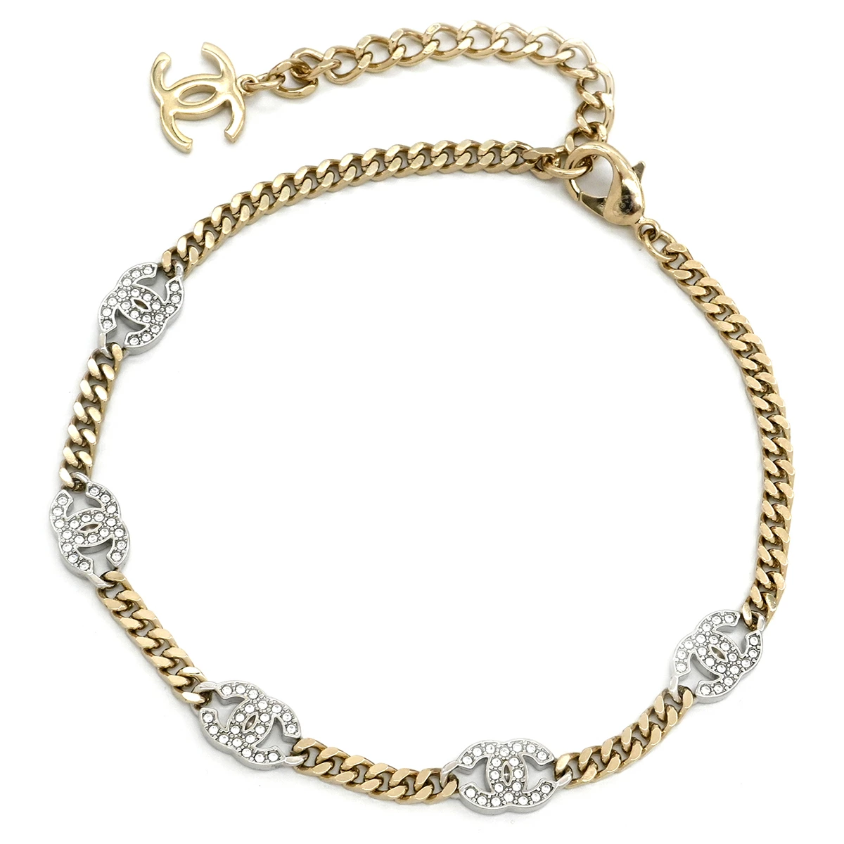 検索用キーワード:【【 シャネル CHANEL チョーカー ココマーク メタル/ストラス ゴールド×シルバー- レディース【箱】 定番 人気 美品 【中古】】 【シャネル CHANEL】【-】
