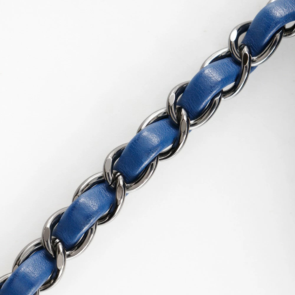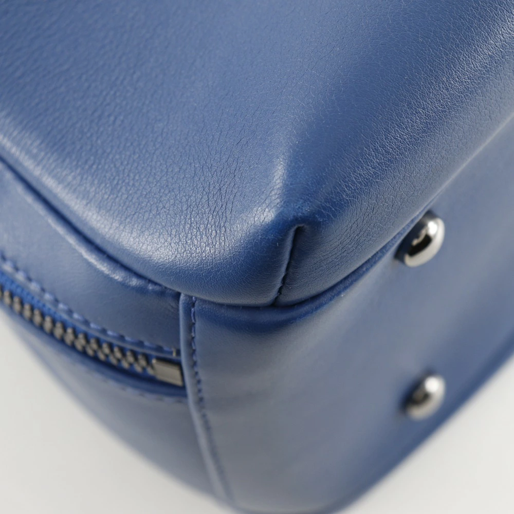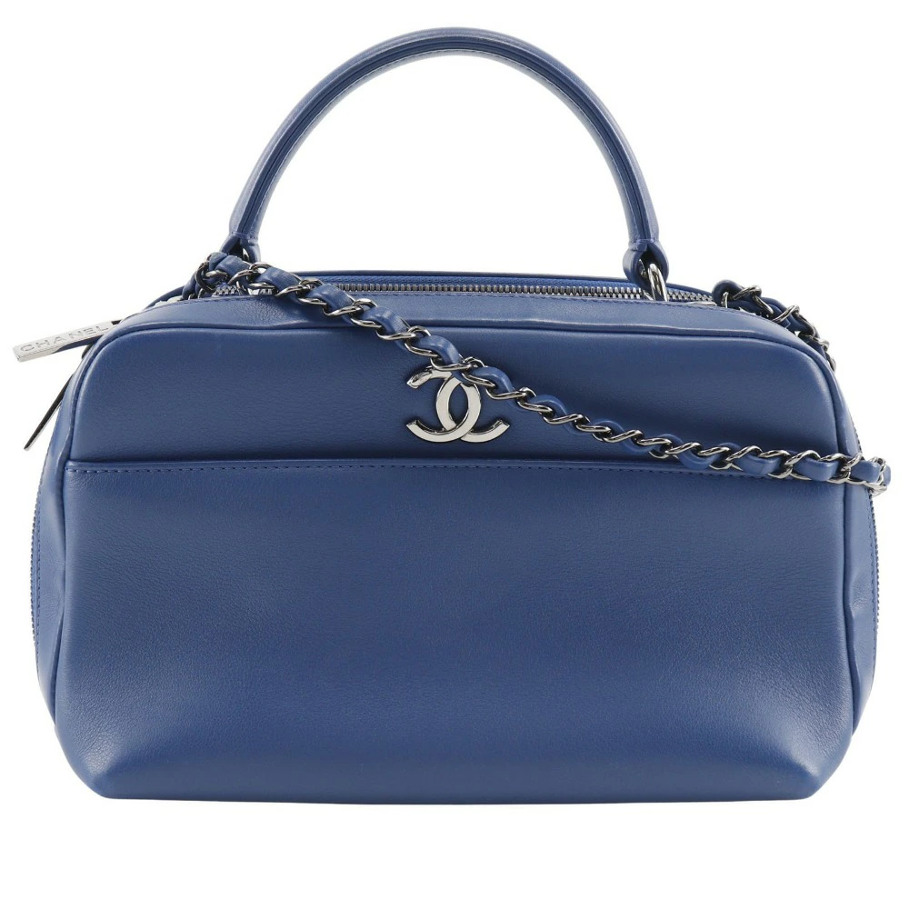 Pre-owned CHANEL Trendy Bowling Bag, 2-Way Shoulder Bag, Calfskin Leather, Made in Italy, Blue, Double Zipper, Women's, Grade A