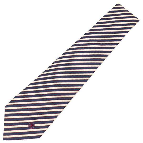 検索用キーワード:【【 シャネル CHANEL ネクタイ ストライプ柄 9.5cm シルク ネイビー×アイボリー×レッドココマーク - メンズ定番 人気 美品 【中古】】 【シャネル CHANEL】【-】