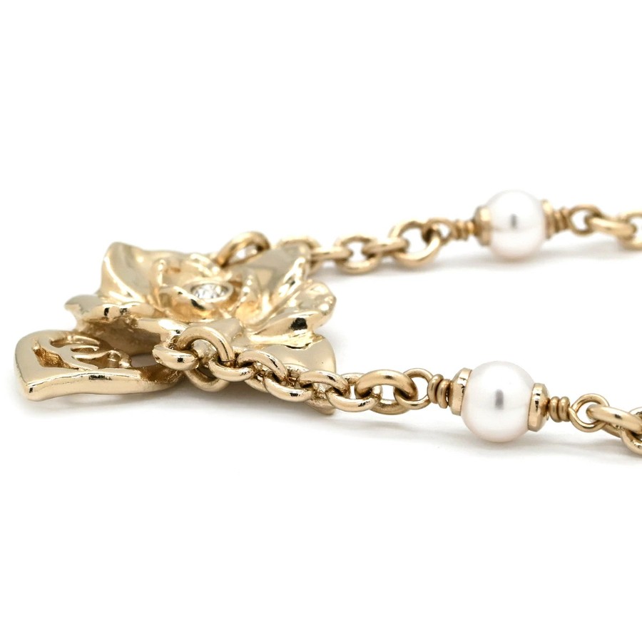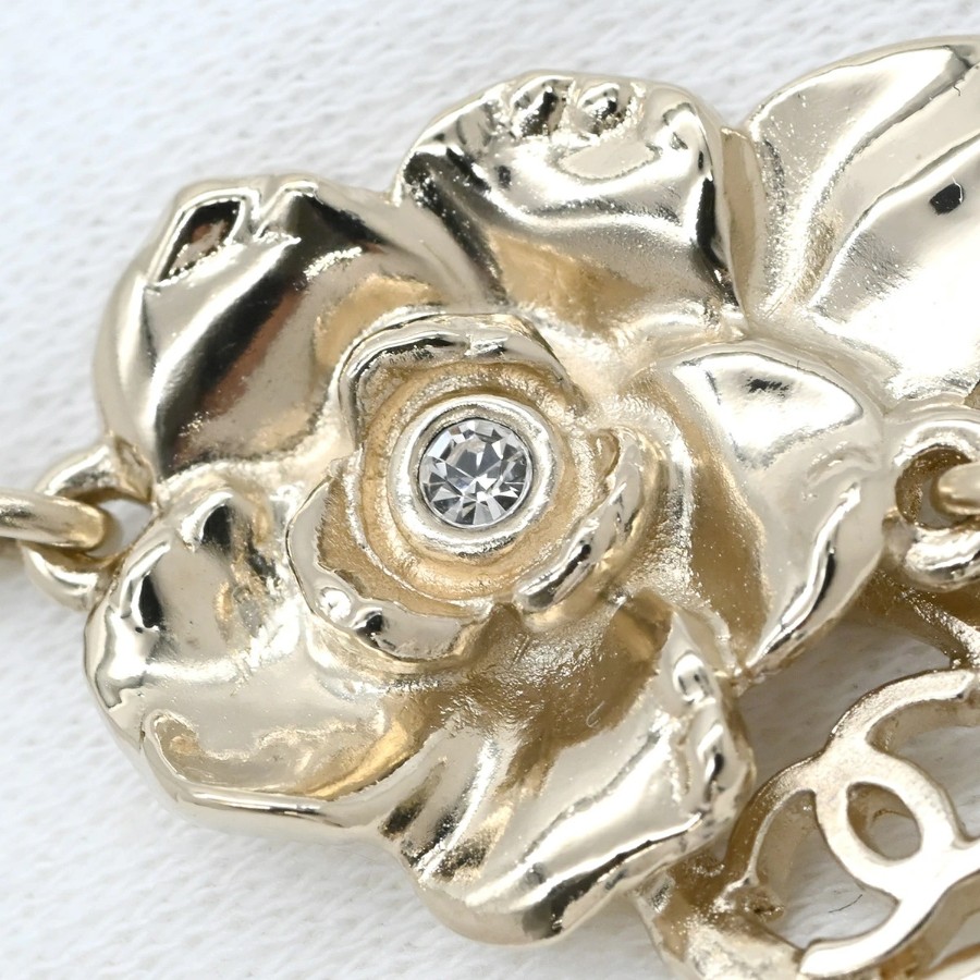 Chanel necklace, camellia motif, GP finish, faux pearl, rhinestones, gold CC logo, choker, flower design, 2024AW collection, champagne gold, ABE419 L24B. [Box included] [Used]