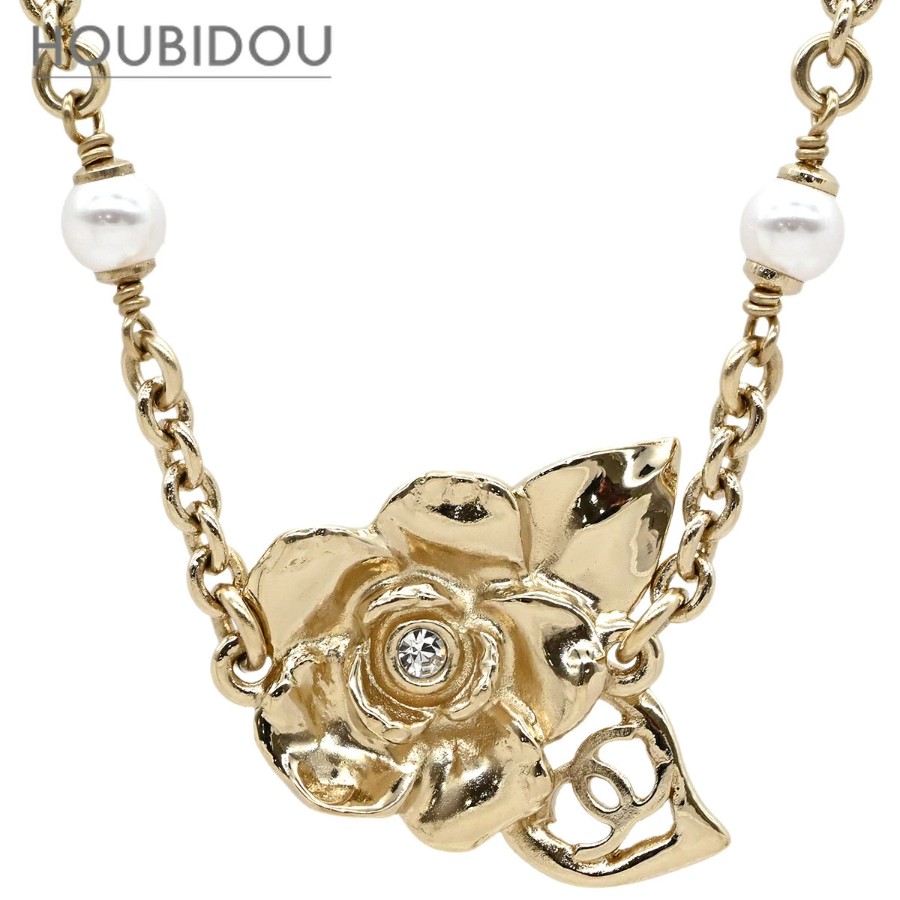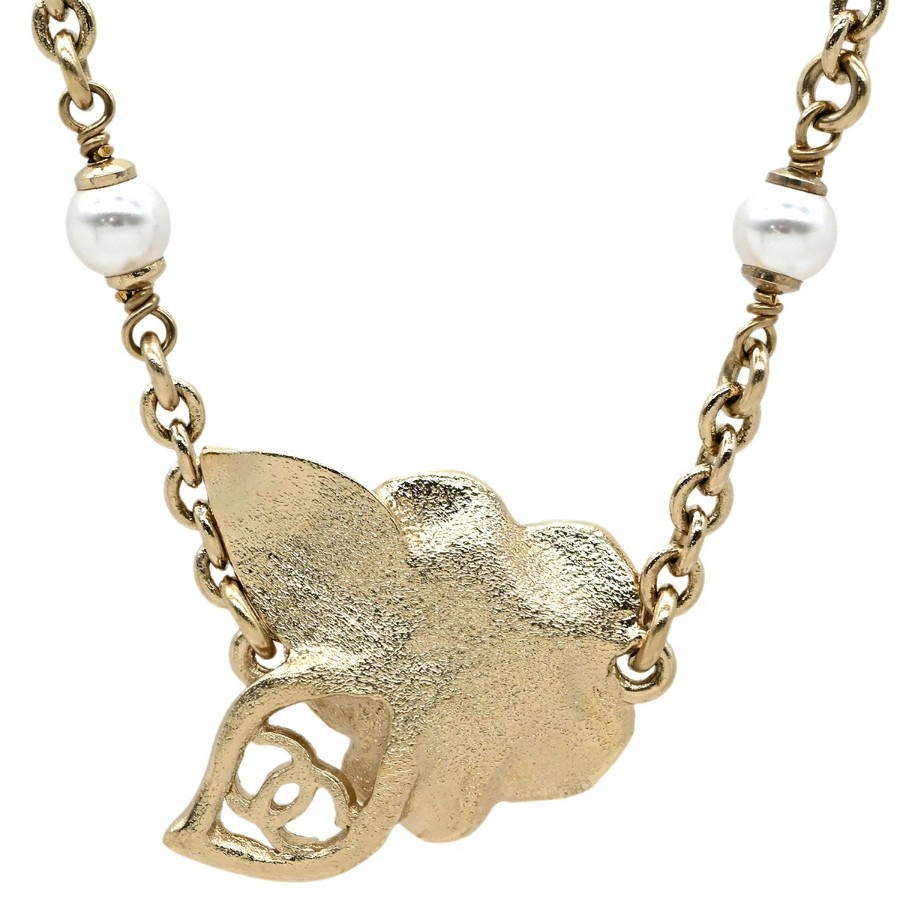 シャネル CHANEL ネックレス カメリアモチーフ GP フェイクパール ストラス ゴールド CCマーク チョーカー 花 2024AW シャンパンゴールド L24B ABE419 レディース 【箱】定番 人気 美品 【中古】