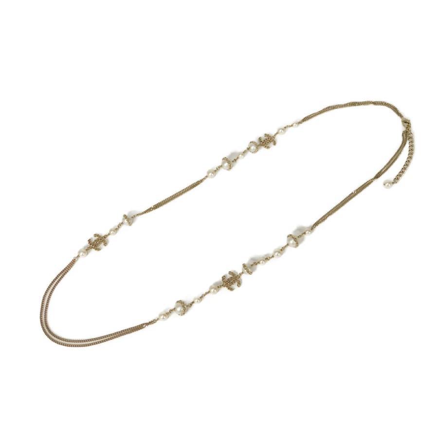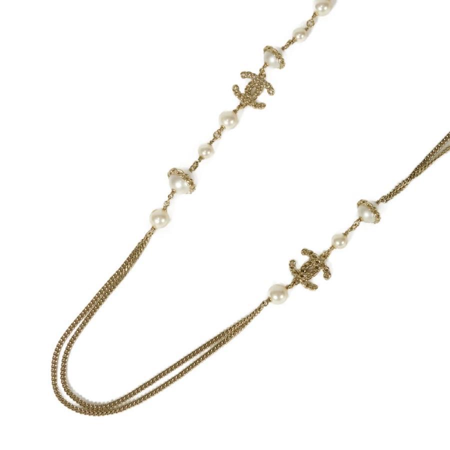 | コスチュームパールにシャネルのCCマークがあしらわれた「チェーン ココマーク パール ロング」2連ネックレスです。 |
