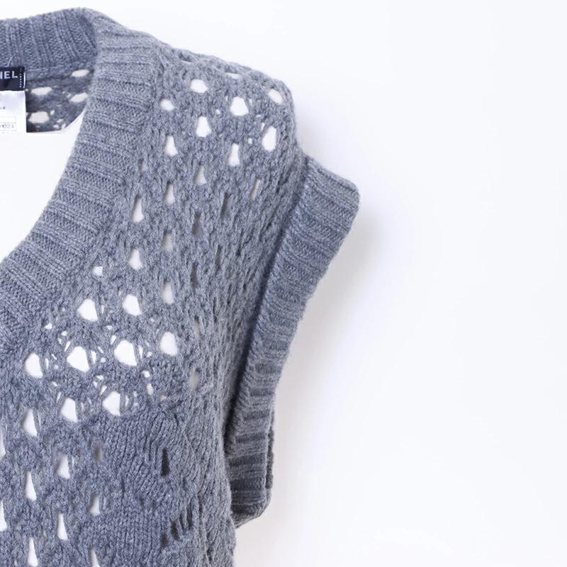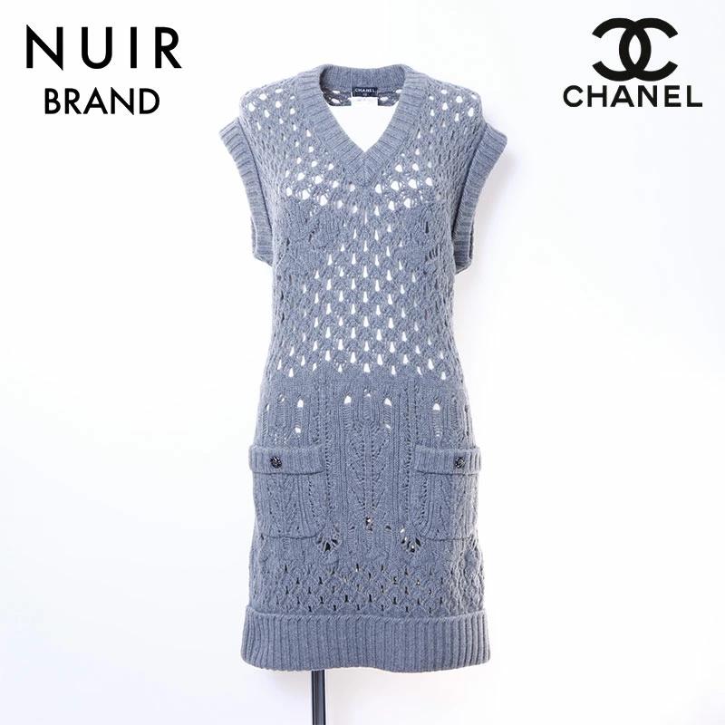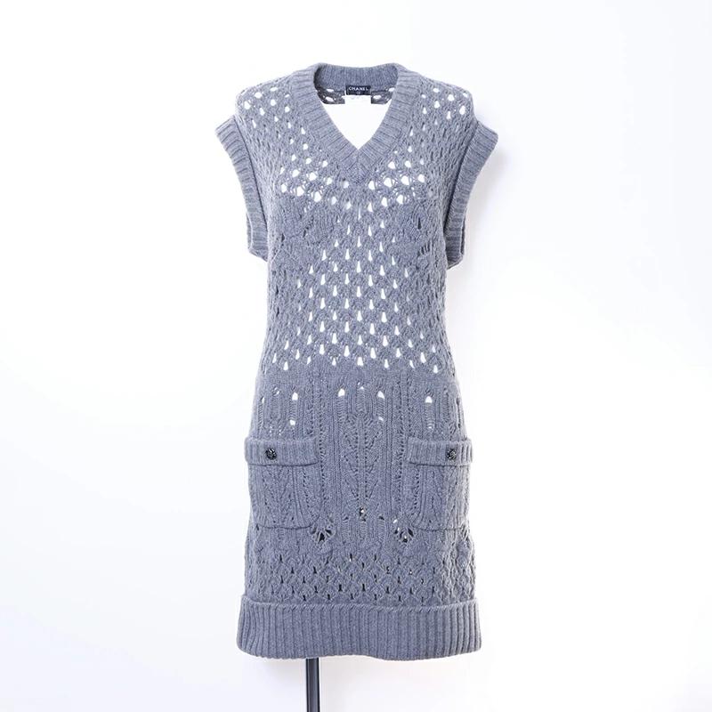Pre-owned Chanel sleeveless knit dress in grey wool (WS6395)