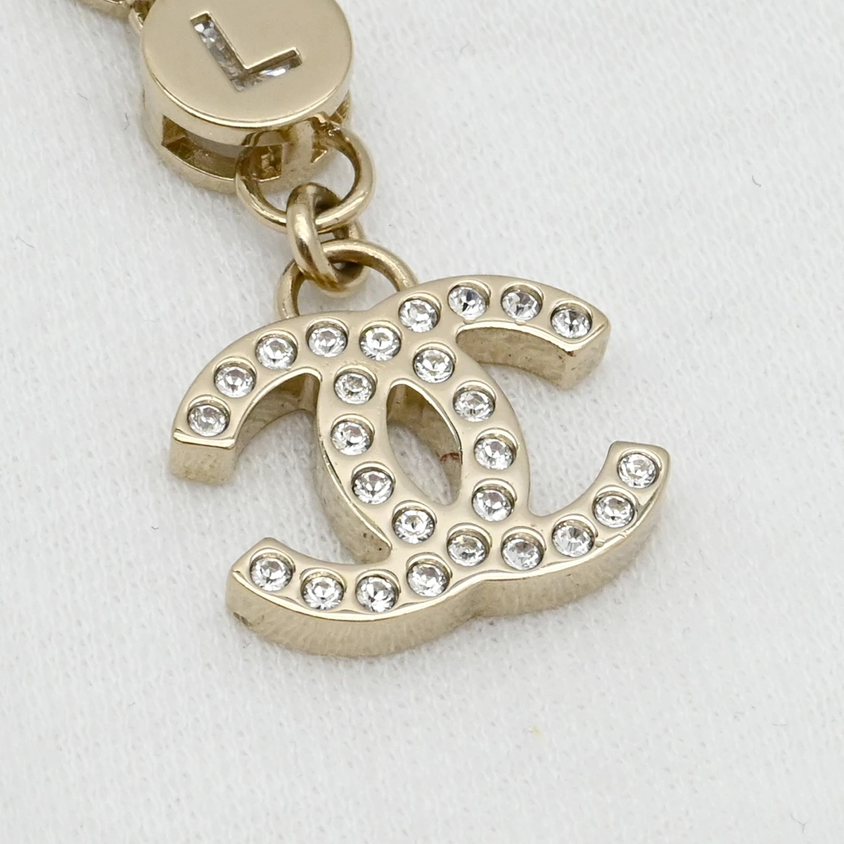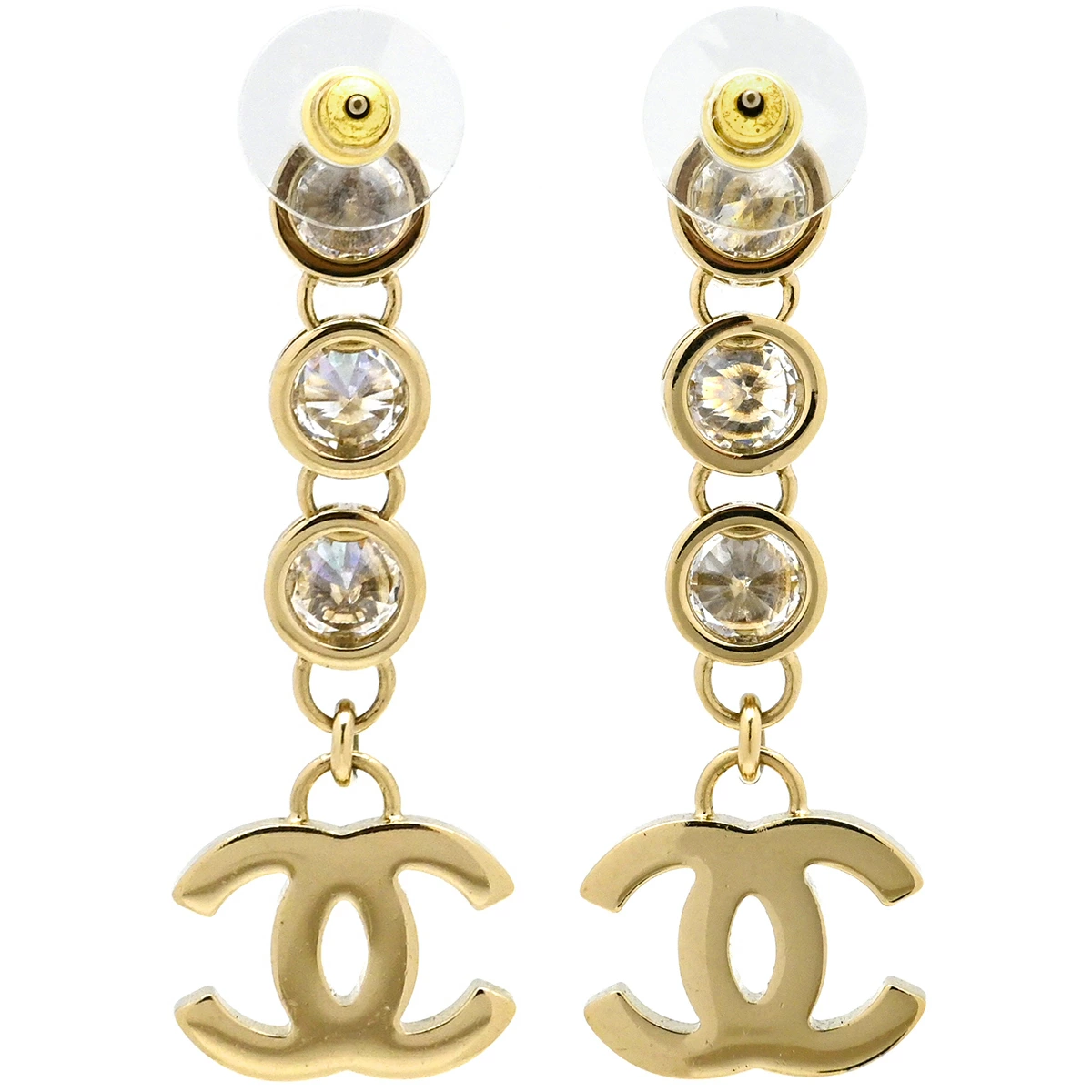 シャネル CHANEL ピアス ココマーク ロゴ ドロップ ココマーク GP ラインストーン ゴールド CCマーク スイング シャンパンゴールド金具 B24B - レディース 【箱】定番 人気 美品 【中古】