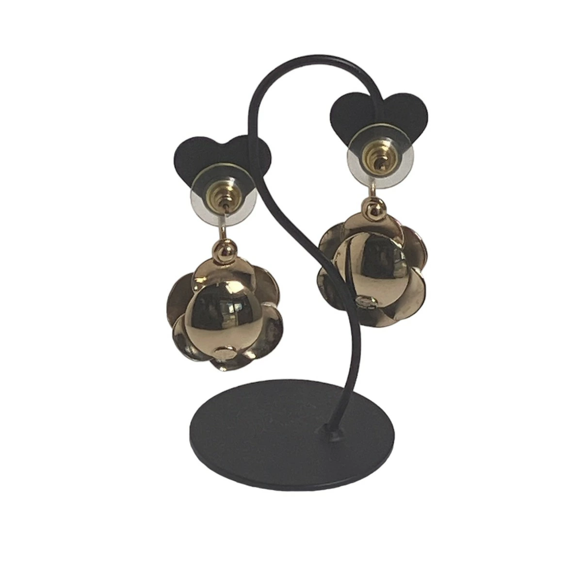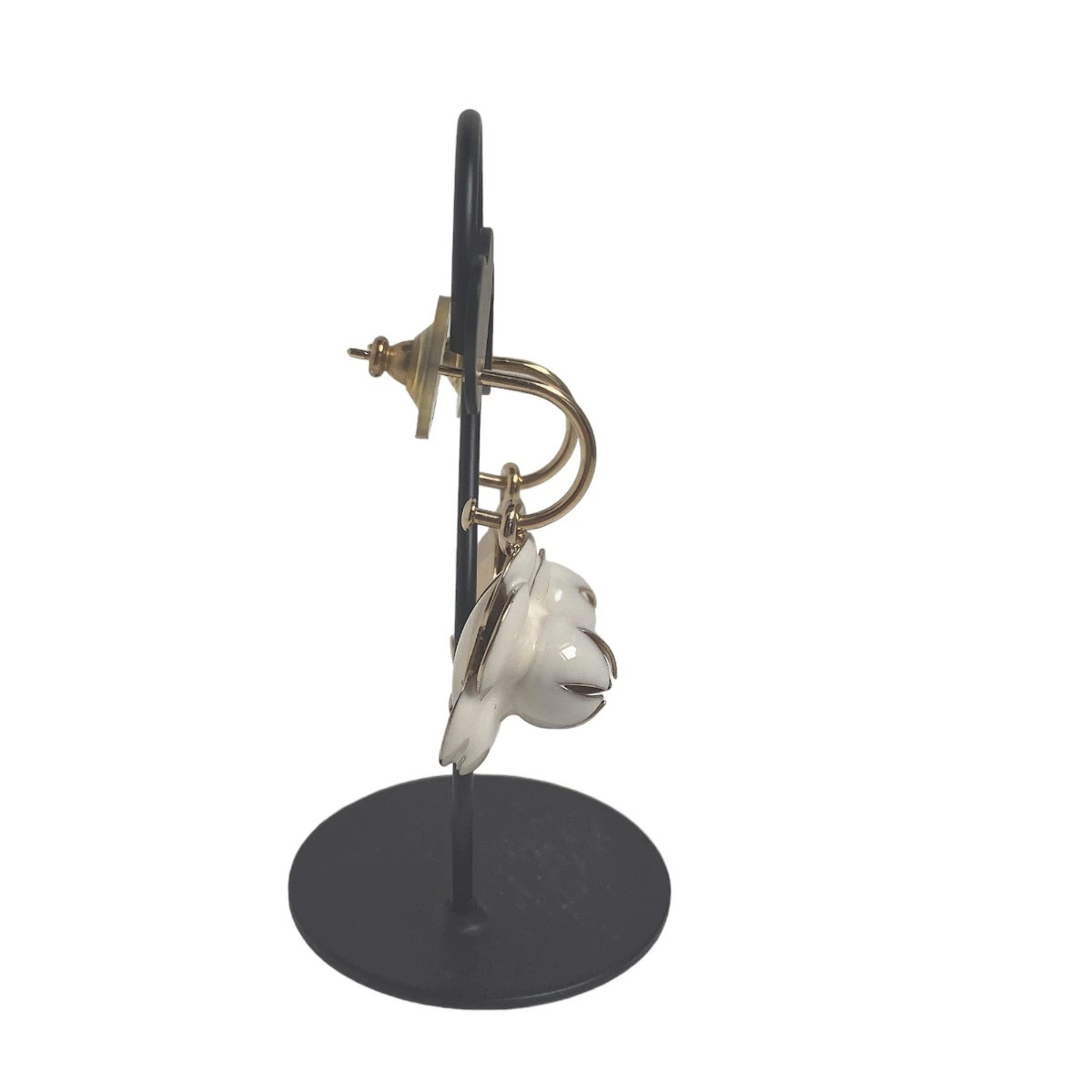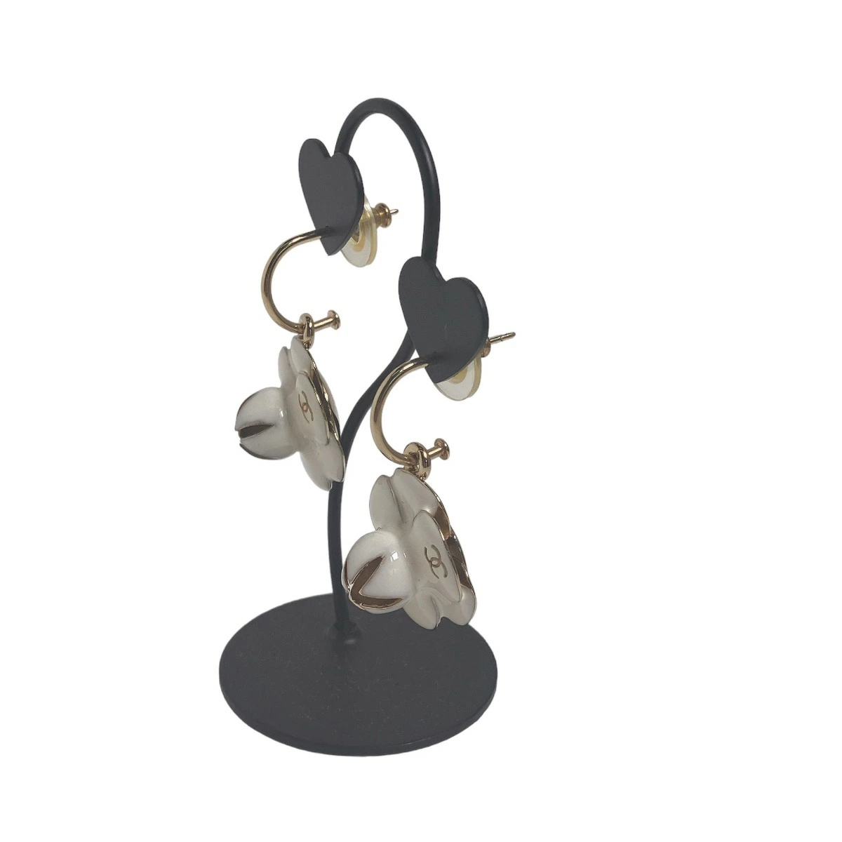 Chanel CHANEL Coco Mark 02P Hoop Earrings, Large Dangling Camellia Metal, White/Gold, [SS] [Pre-owned]