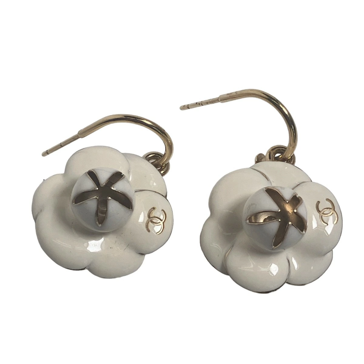 シャネル CHANEL ピアス フープピアス ココマーク 02P 大ぶり 揺れる カメリア メタル ホワイト/ゴールド 【SS】 【中古】