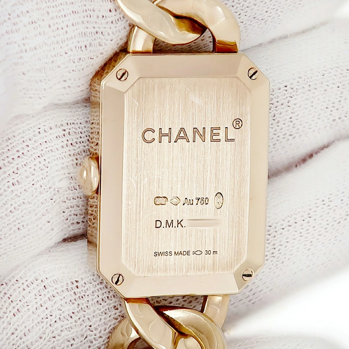シャネル CHANEL プルミエール Lサイズ H4412 K18PG無垢 純正ダイヤ 白 シェル チェーンブレス スクエア レディース 腕時計クオーツ ホワイト 【中古】【店頭受取不可】