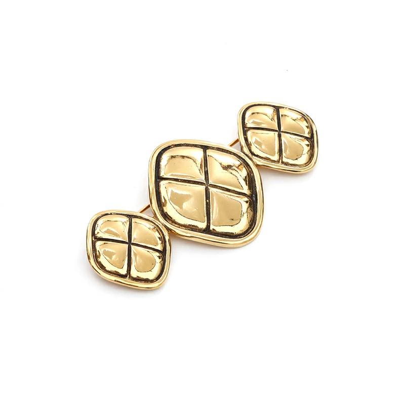 Pre-owned CHANEL Matelasse Motif Diamond Brooch, Gold, WS3554