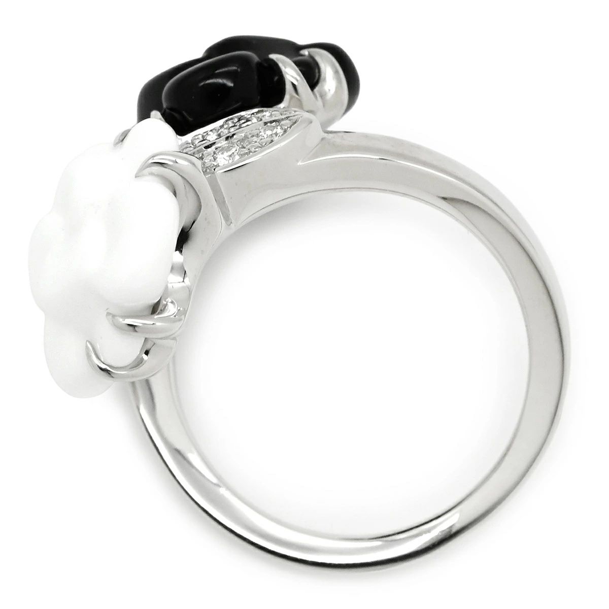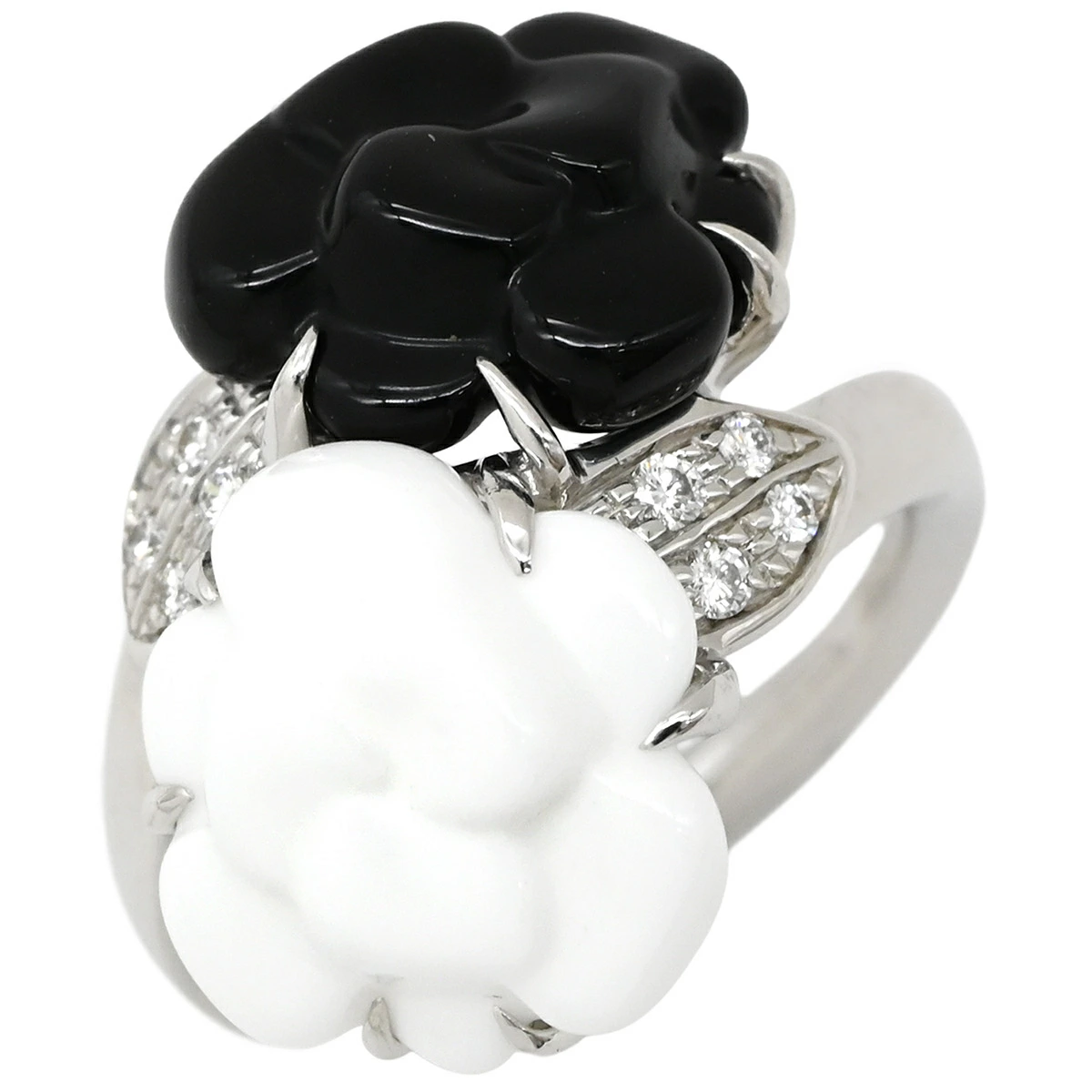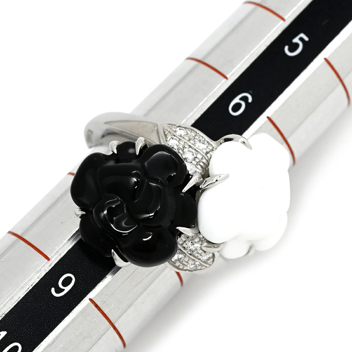 検索用キーワード:【 シャネル CHANEL リング 指輪 カメリア カメリア K18WG/ダイヤモンド/オニキス ブラック×ホワイト×ホワイトゴールドAu750 ダイヤ オニキス ホワイトアゲート メノウ 花 J2938 7.5号 #48レディース【箱】 定番 人気 美品 【中古】】【シャネル CHANEL】【J2938】