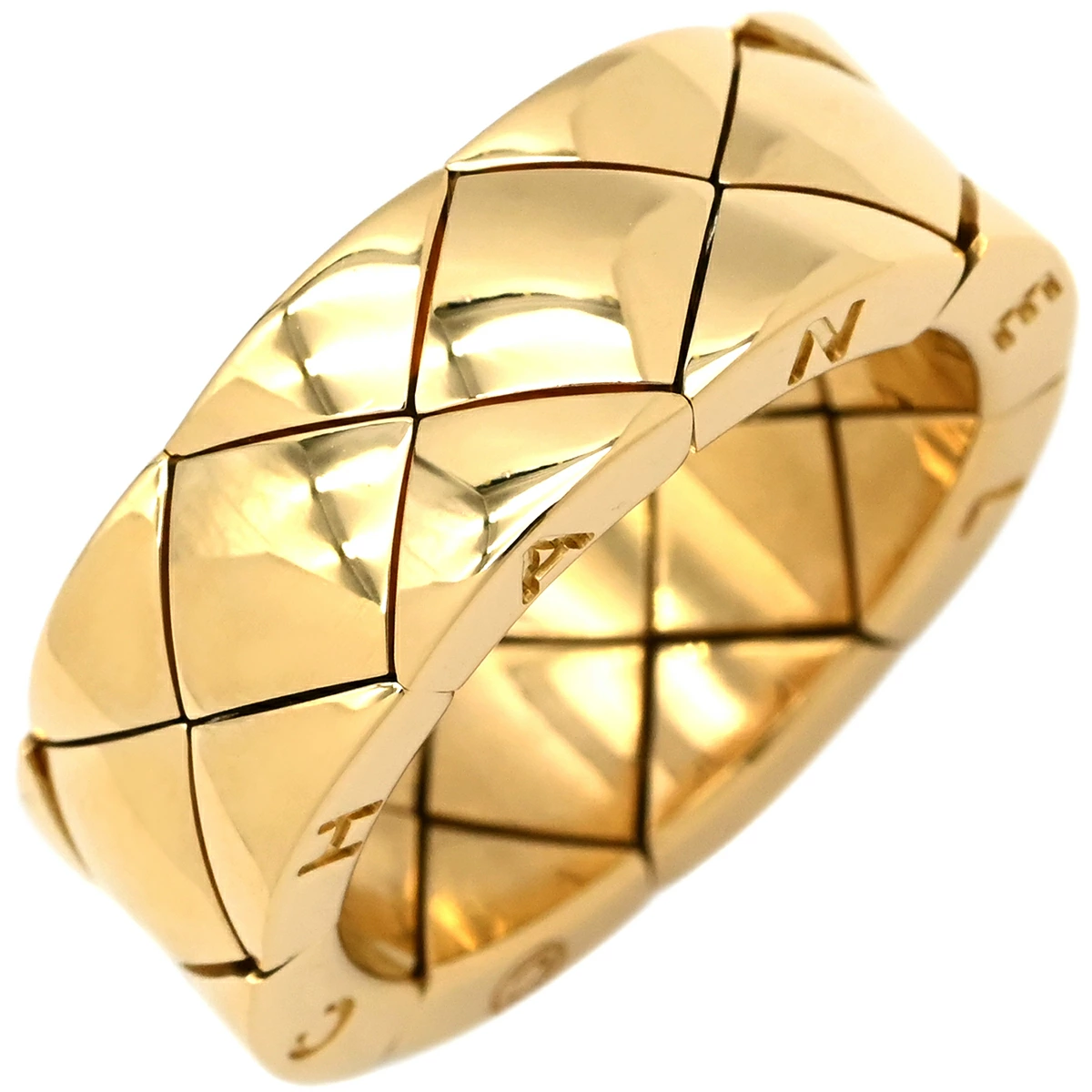 Chanel Matelassé Ring, 18K Yellow Gold, #46, 18K 750YG, Quilted Design, Size 7, Pre-owned, Boxed