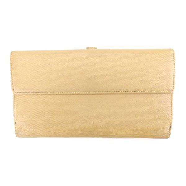Pre-owned Chanel Coco Button Long Wallet, Beige, Women's