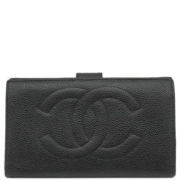 ▲クリックで拡大されますシャネル CHANEL 長財布 ココマーク がま口 ラムスキン キャビアスキン 黒 黒 二つ折り ゴールド金具 A01429 レディース 【箱】 【中古】
