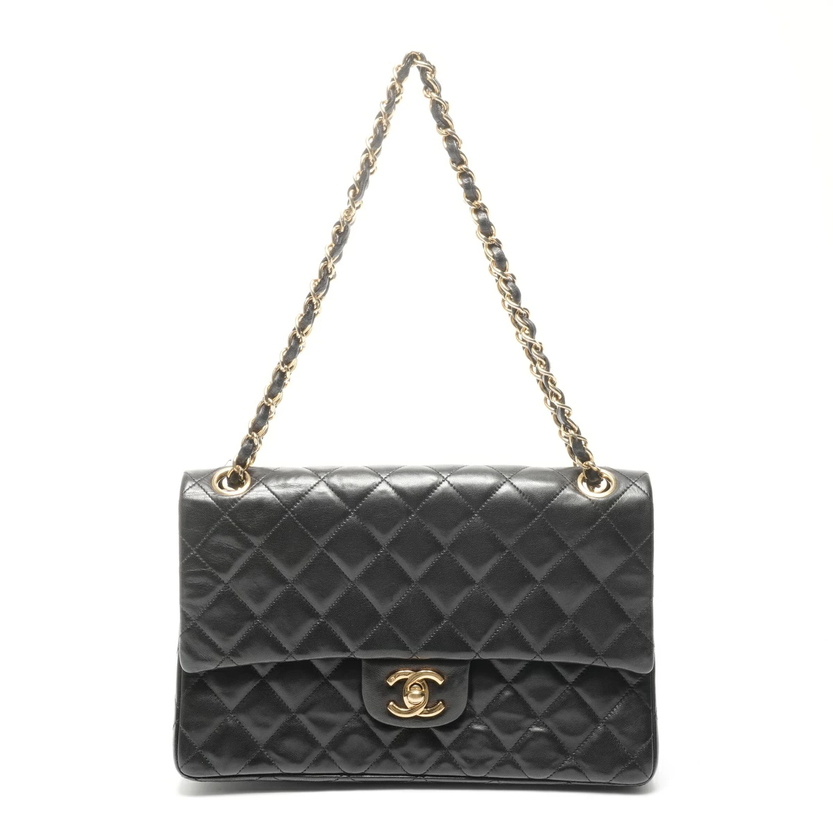 商品名 シャネル CHANEL 1番台 1989-1991 ダブルフラップ マトラッセ 25cm ラムスキン ショルダーバッグ ブラック WS24963 【中古】 コンディションランク B コンディション詳細 使用感があるものの傷や汚れが少なく、比較的状態の良い商品 |