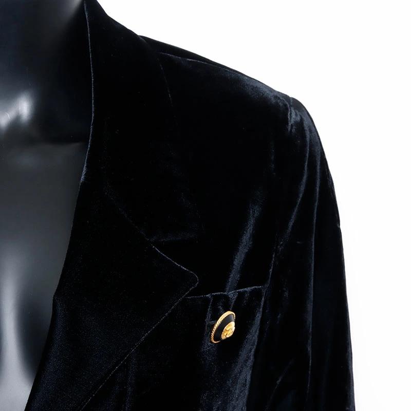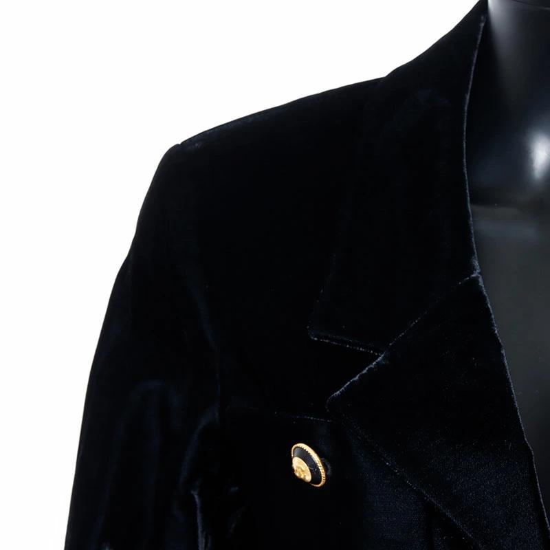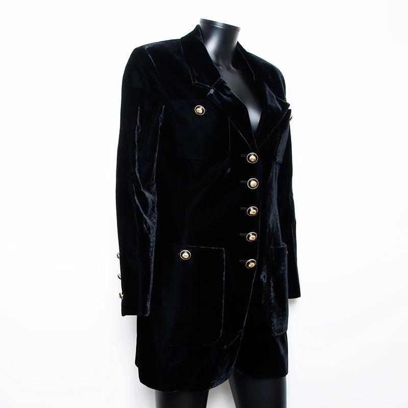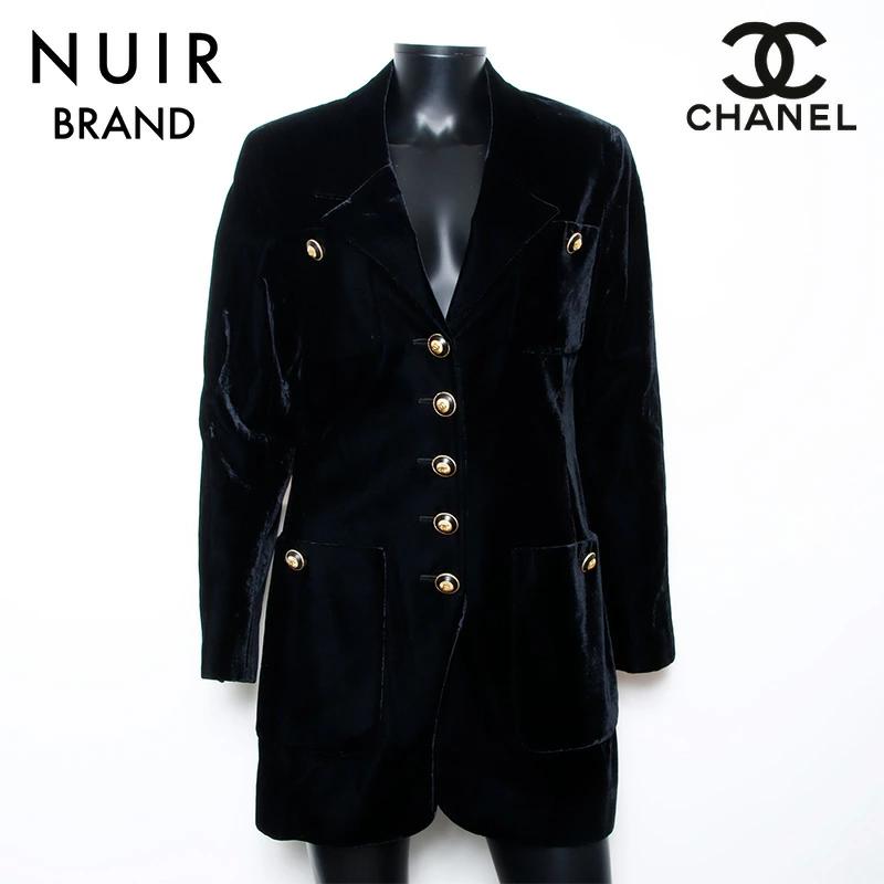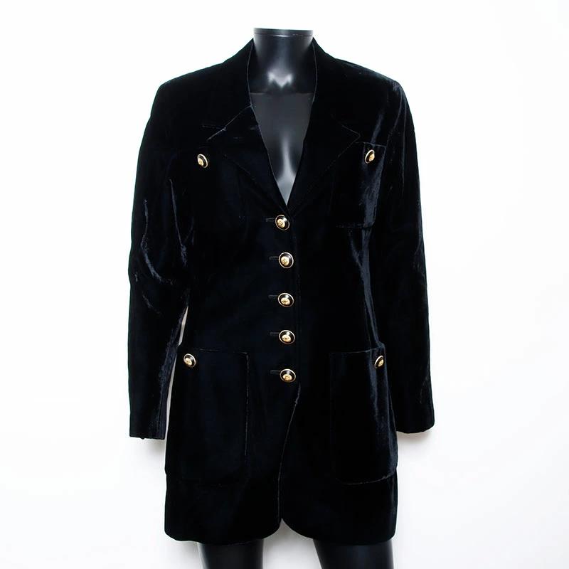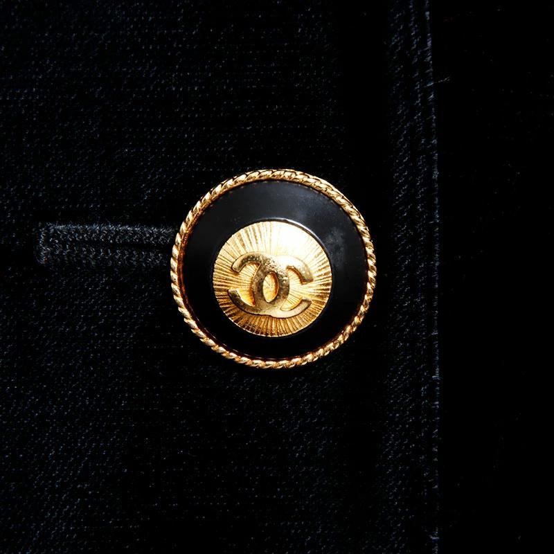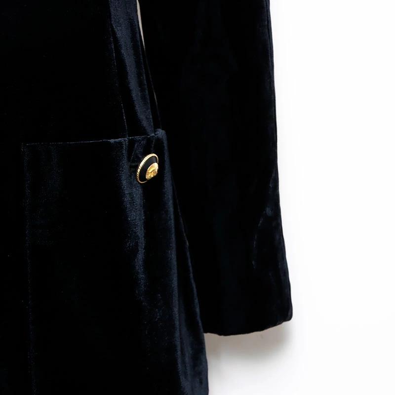Pre-owned Chanel 1990s Velour Coco Mark Button Coat, Black, WS10952
