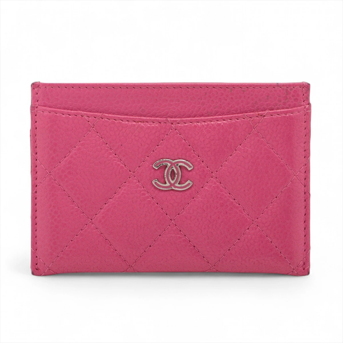 Pre-owned CHANEL 21st Series 2015-2016 Caviar Matelasse Coco Mark Card Case, Pink, WS15963