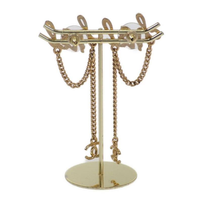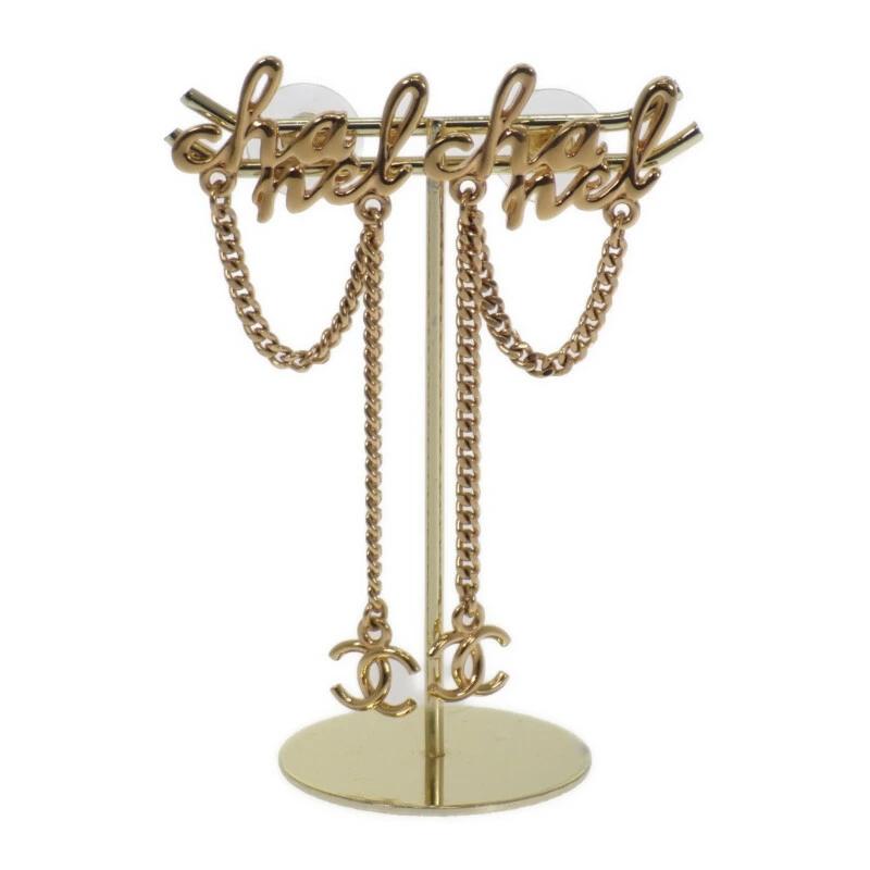 ブランドの象徴であるココマークと流れるようなチェーンデザインが美しく調和した、エレガントでモードな印象のジュエリーです。ゴールドのメタル素材が上品な輝きを放ち、「Chanel」の筆記体ロゴと連なるチェーンが動くたびに揺れ、華やかさと個性を演出します。軽やかなデザインながらも存在感のある仕上がりで、顔まわりに洗練されたアクセントを添えます。