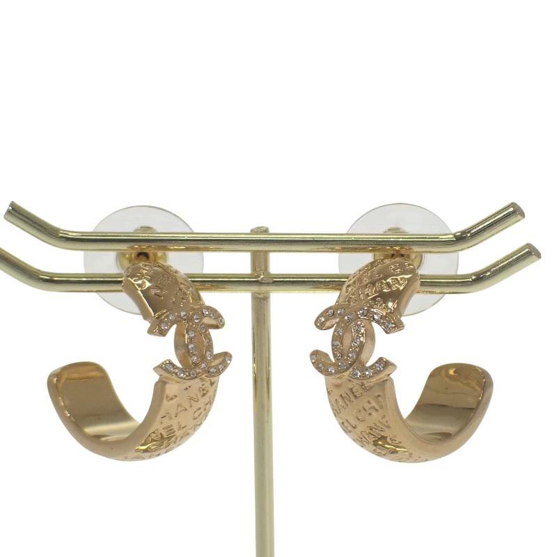 艶やかなゴールドトーンメタルのフープに、輝くラインストーンをあしらったCCモチーフが組み合わされ、ラグジュアリーで洗練された印象を演出してくれます。
