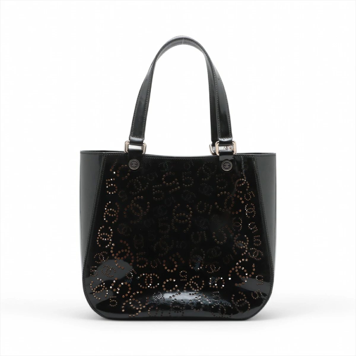 Chanel No. 5 Patent Leather Perforated Tote Bag, Shoulder Bag, Handbag, Black, Women's, EEE BV10-15