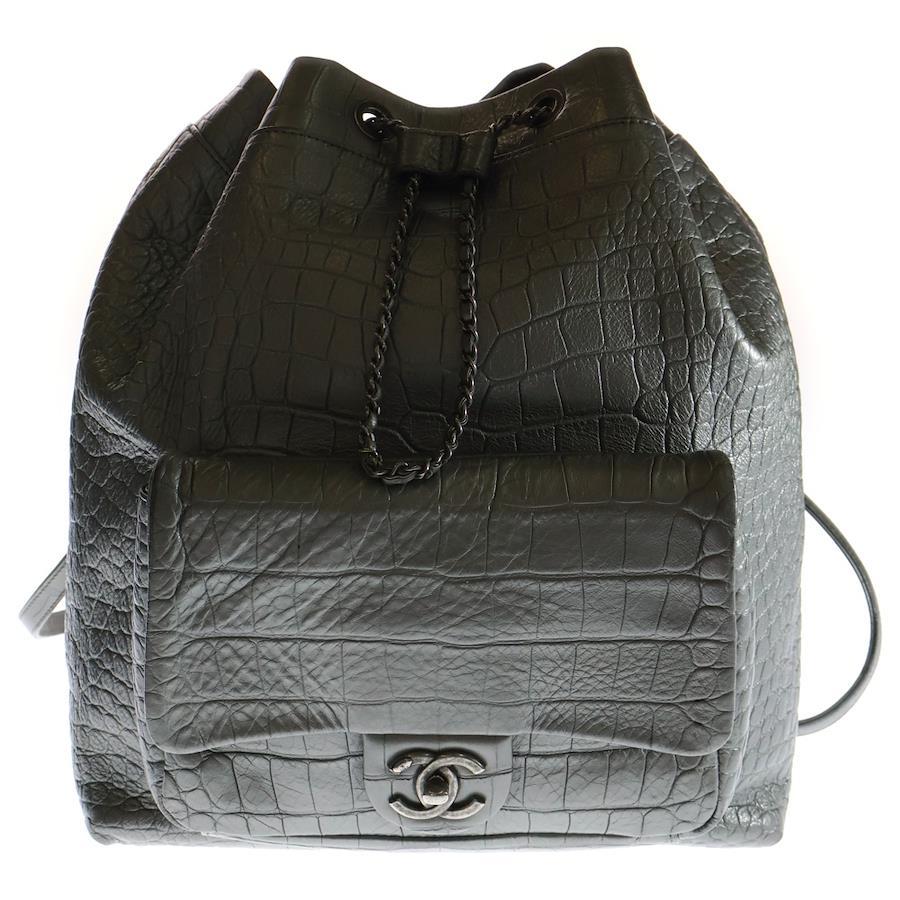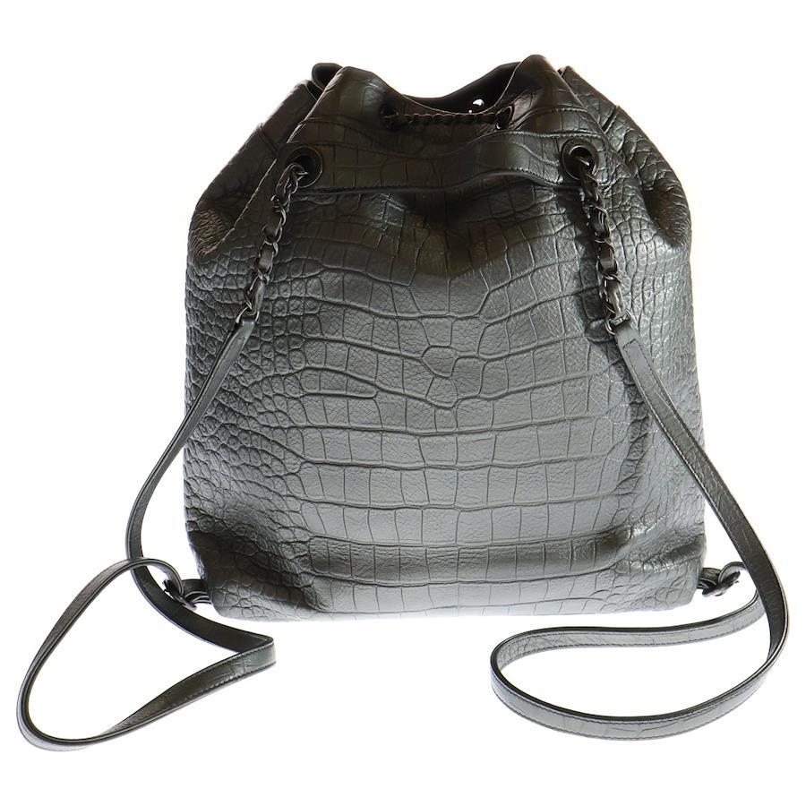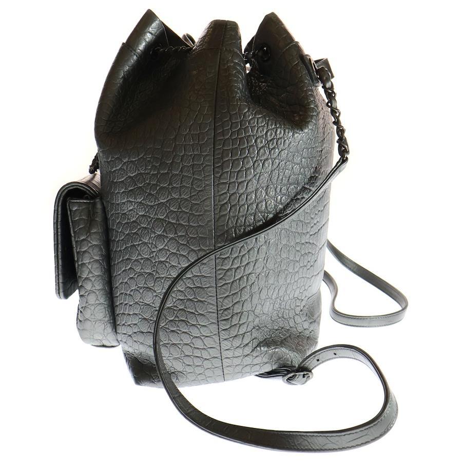 [モデル]SILVER CROC EMBOSSED LEATHER BACK PACK クロコレザー ココマーク リュック バックパック シルバー 28番台