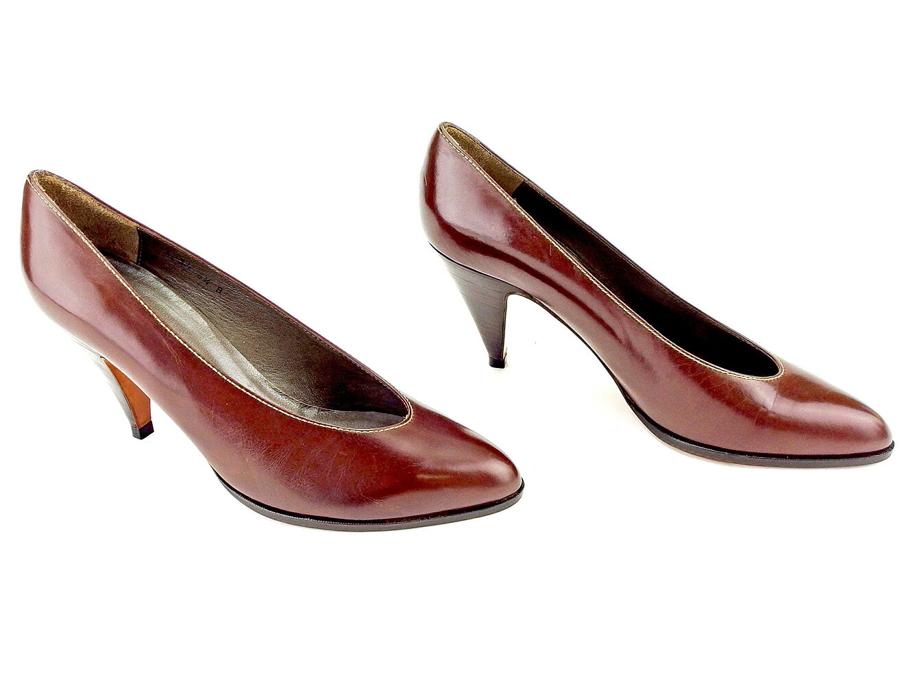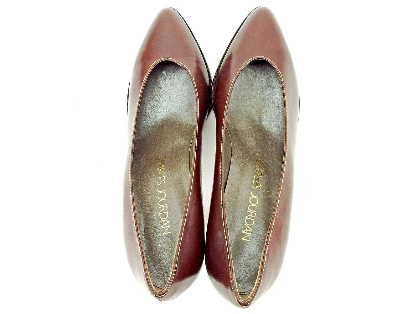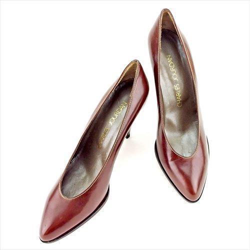 [Rakuten Super Sale ★ Up to 50% Off] Charles Jourdan Pumps, Pointed Toe, Size 6.5, Stacked Heel, Brown, Women's, Pre-owned, High-End Brand, Vintage