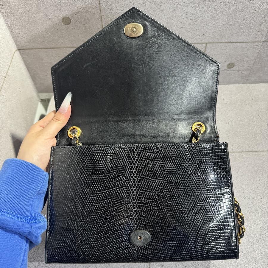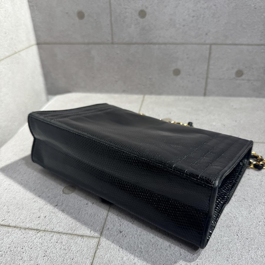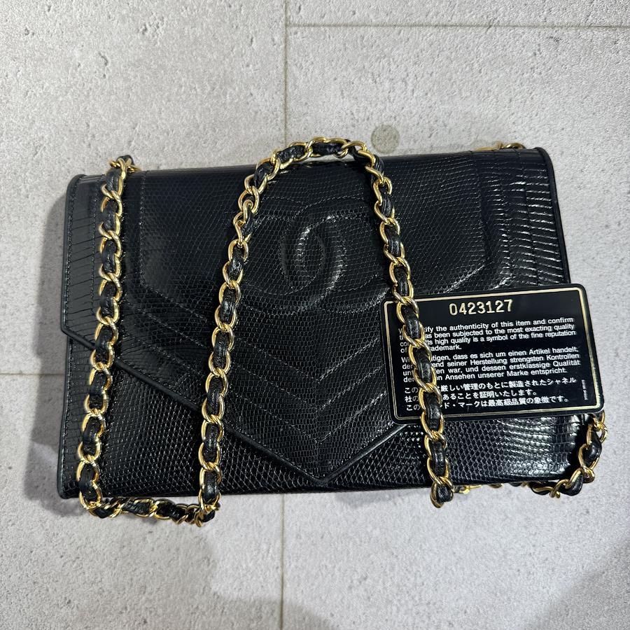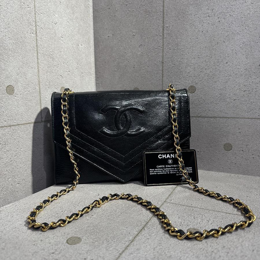 ブランド名:シャネル素材:リザードレザーサイズ:約 H 22cm×W 14cm×D 6.5cmチェーン長さ:約 90cm年代:0番台 1986年ー1988年製造付属品:ギャランティカード、シリアルシール状態:Aランク 使用感の少ない綺麗な中古品