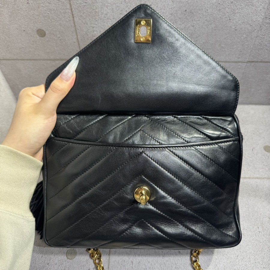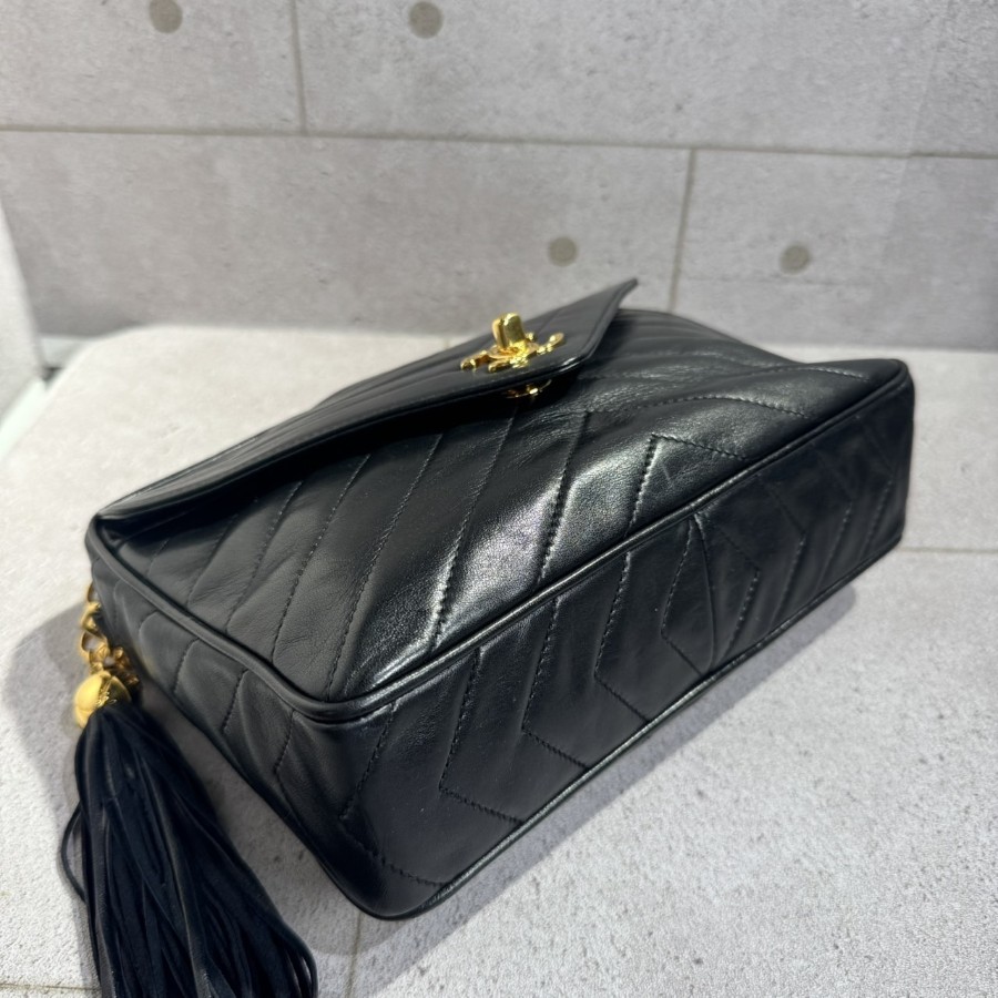 ブランド名:シャネル素材:ラムスキンサイズ:約 H 17cm×W 23cm×D 6cmチェーン長さ:約 111cm年代:2番台 1991年ー1994年製造付属品:ギャランティカード、シリアルシール状態:Aランク 使用感の少ない綺麗な中古品