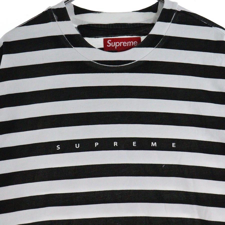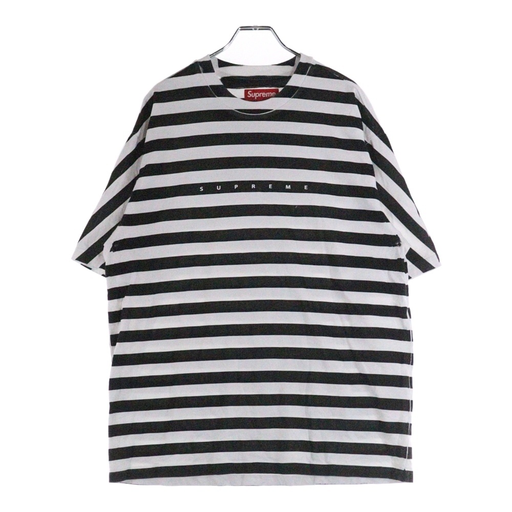 [モデル]18SS Bar Stripe Tee バーストライプ ボーダー ロゴ刺繍 クルーネック半袖Tシャツ カットソー ブラック/ホワイト
