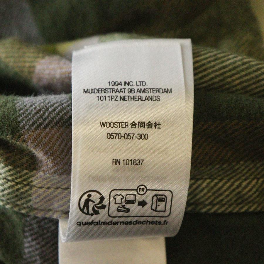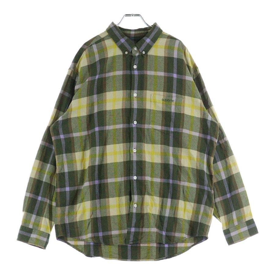 [モデル]23AW Plaid Flannel Shirt フロントロゴ刺繍 フランネル 長袖シャツ グリーン/イエロー