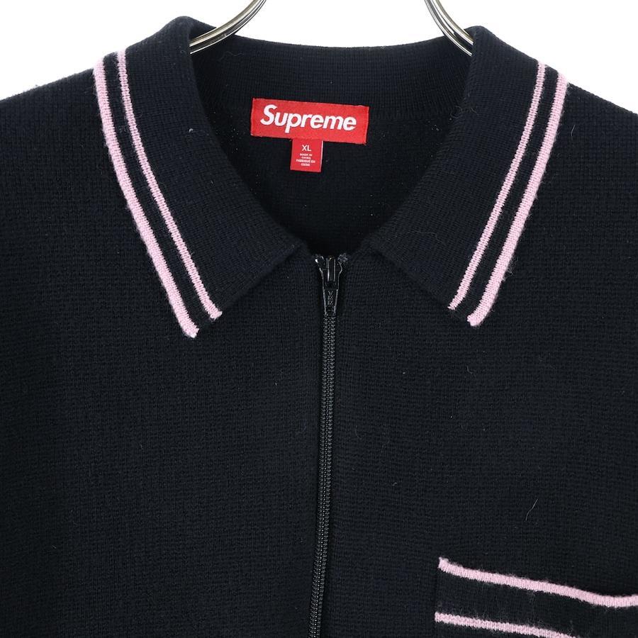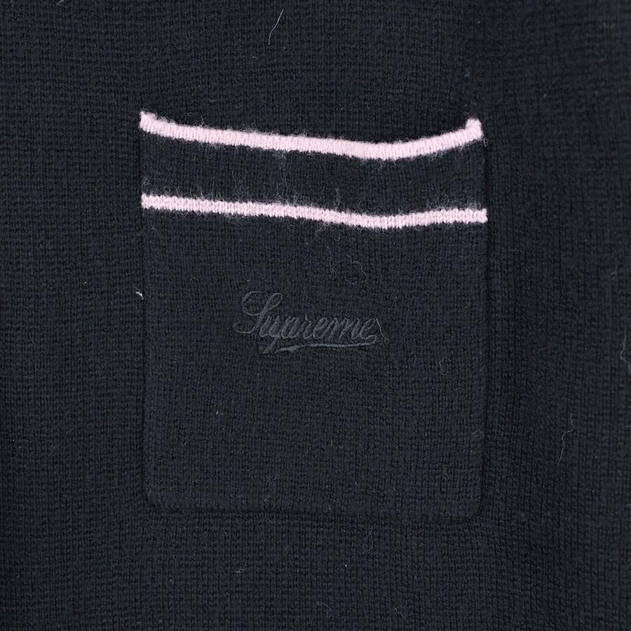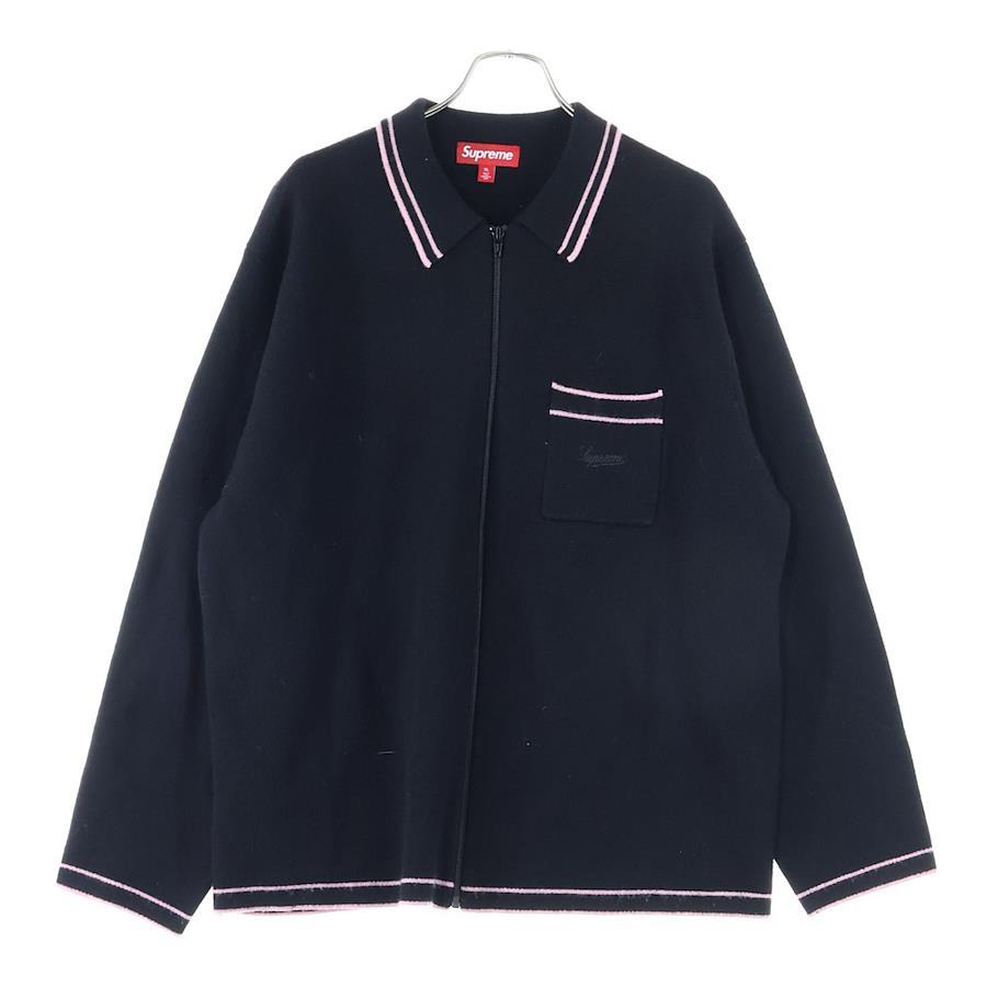 [モデル]24AW Zip Up Polo Sweater フロントロゴ刺繍 ジップアップ ポロニットセーター ブラック/ピンク