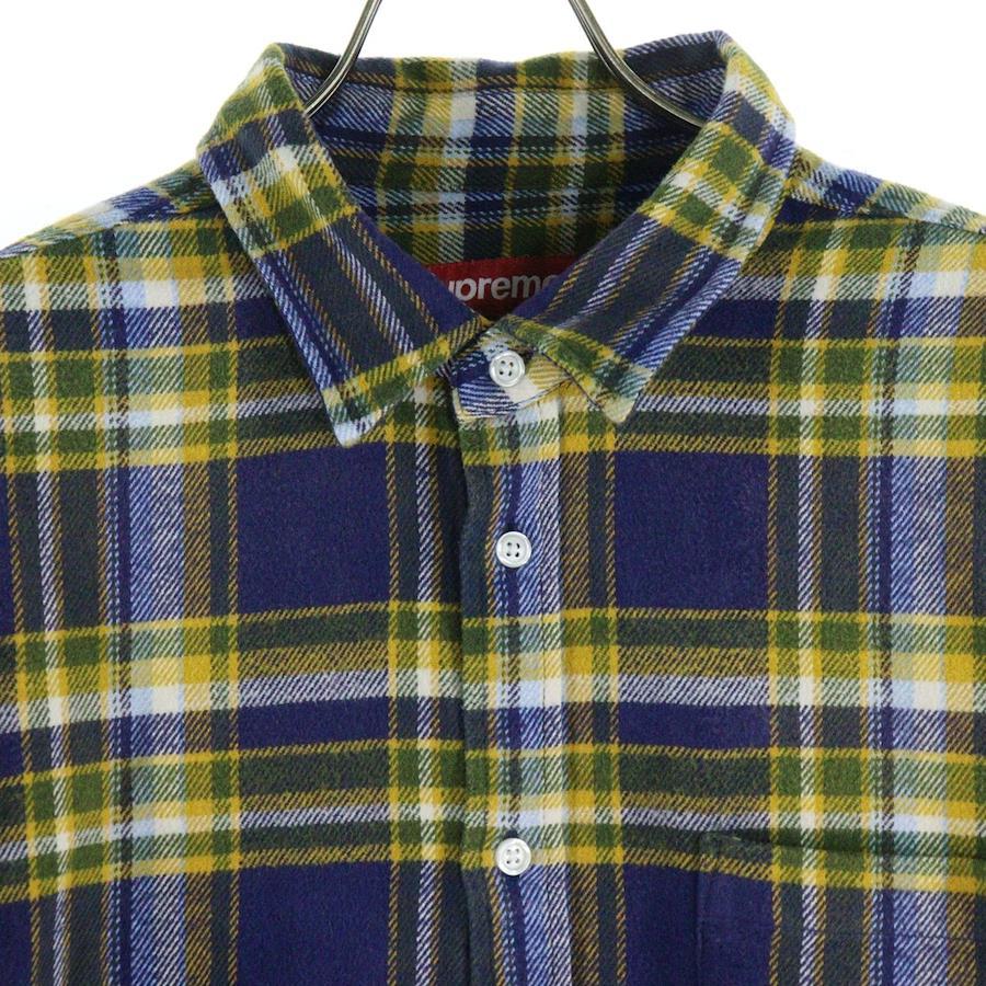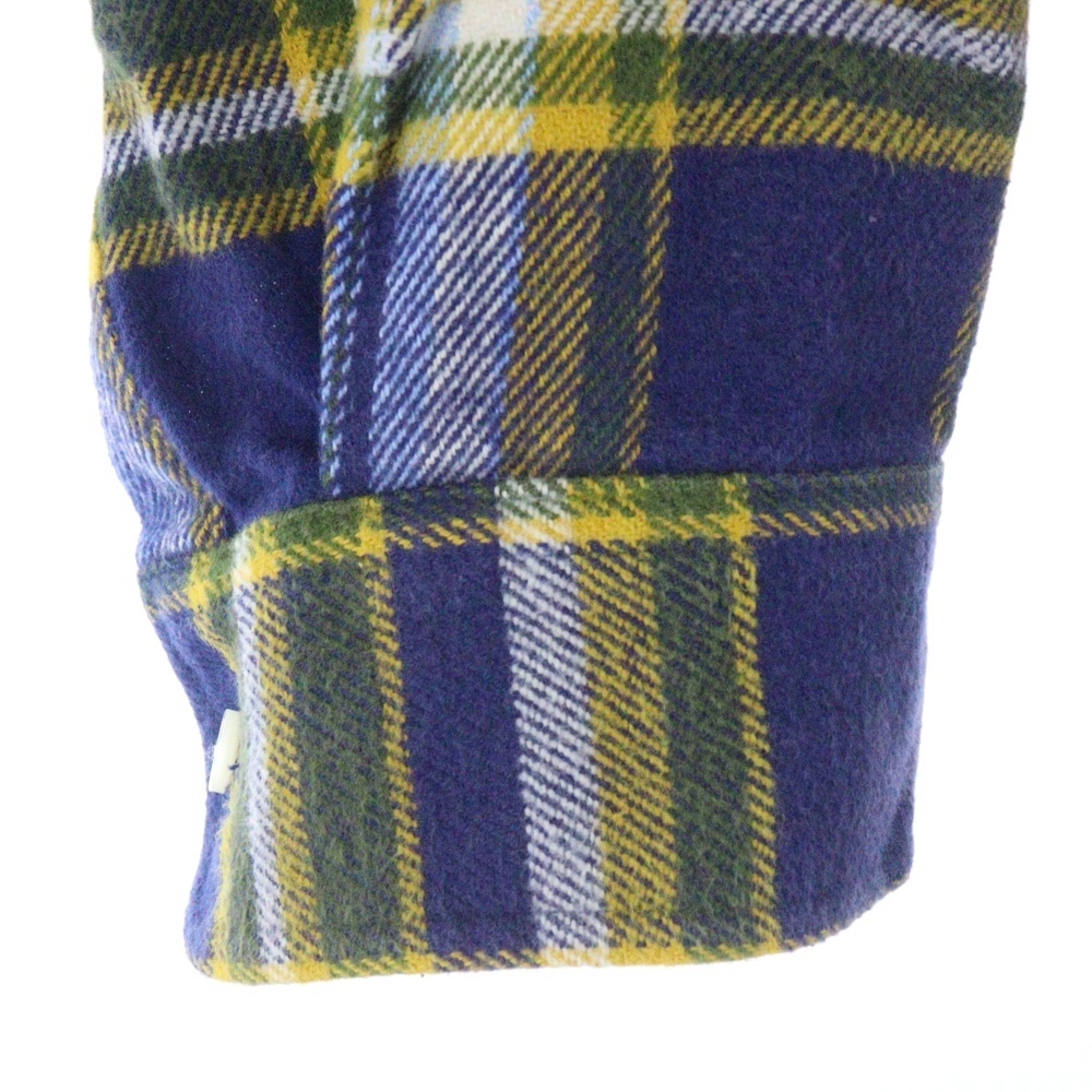 [モデル]25SS Old English Plaid Flannel Shirt オールドイングリッシュ ロゴ 刺繍 チェック プレイド フランネル 長袖 シャツ ブルー/イエロー