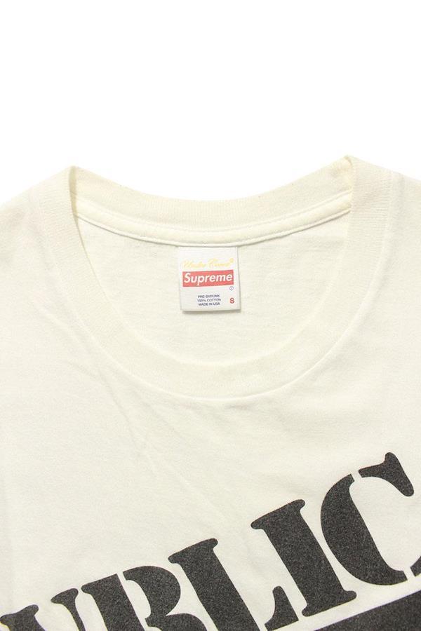 ランク:C (ダメージ、汚れが目立つ商品)状態備考:首元等に汚れがあります全体的に黄ばみ、毛羽立ちがありますプリント部分に色褪せ、バックプリントにひび割れがありますブランド:シュプリームサイズ:S色:ホワイト実寸:肩幅43cm 身幅46.5cm 着丈63.5cm 袖丈20cm重さ:-素材:コットン付属品:なしその他特徴:-管理番号:10519-251105-0226