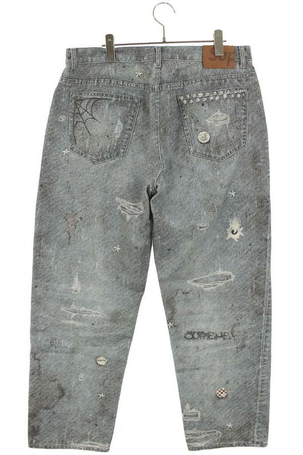 ランク:A (使用感が少ない商品)状態備考:裾に若干の擦れがありますブランド:シュプリームサイズ:34色:インディゴ実寸:ウエスト幅45cm 股上30.5cm ワタリ幅36.5cm 股下77cm 裾幅23cm重さ:-素材:(表地) コットン (パッチ) 牛革付属品:なしその他特徴:-管理番号:10831-251021-0037