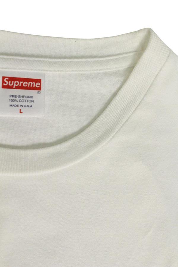 ランク:B (使用感がある商品)状態備考:首元、袖口裏に若干の黄ばみがあります全体的に若干の毛羽立ちがありますブランド:シュプリームサイズ:L色:ホワイト実寸:肩幅54cm 身幅56.5cm 着丈72.5cm 袖丈66.5cm重さ:-素材:コットン付属品:なしその他特徴:-管理番号:10518-250816-0060