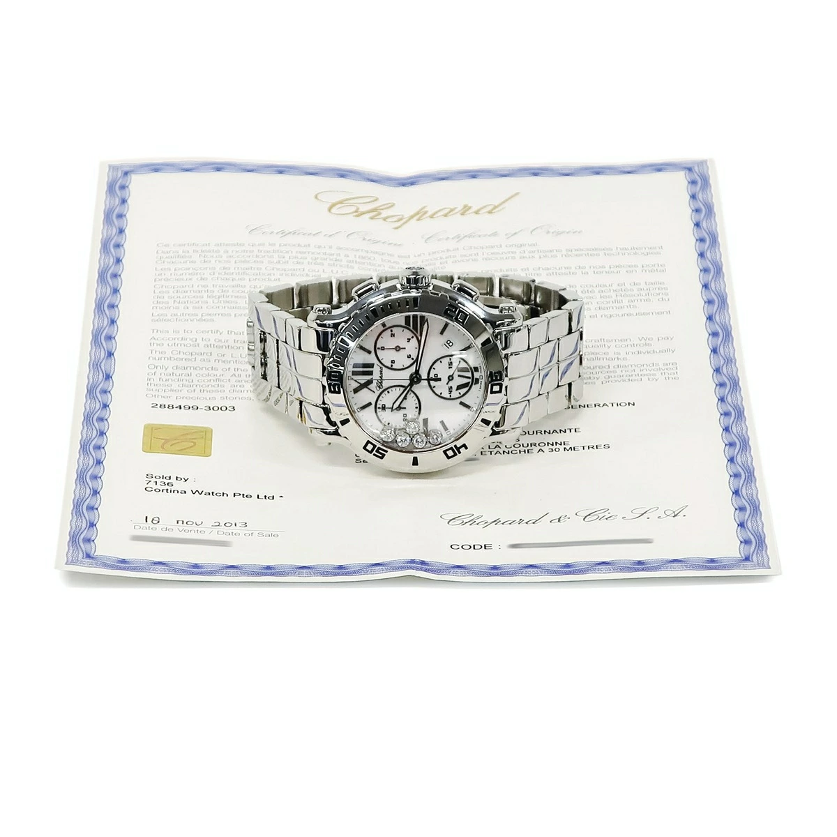 ショパール CHOPARD ハッピースポーツ クロノグラフ 288499-3003 純正ダイヤ ムービング 5P 5粒 ラウンド メンズ レディース 腕時計クオーツ ホワイト 【中古】【店頭受取不可】