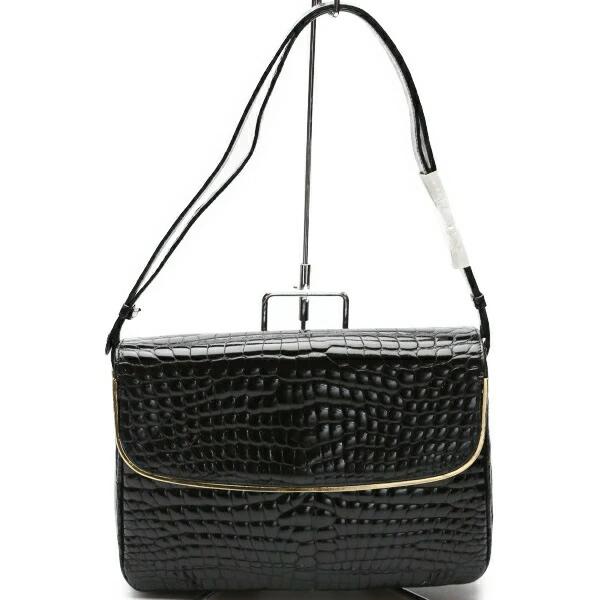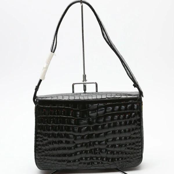 Crocodile shoulder bag, black crocodile shoulder bag [H] [Pre-owned]