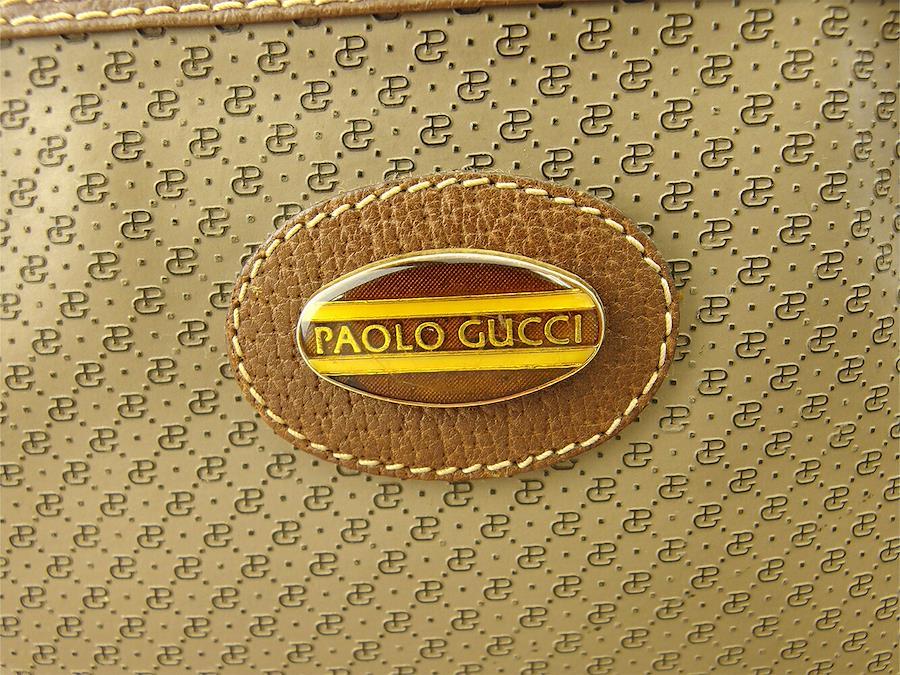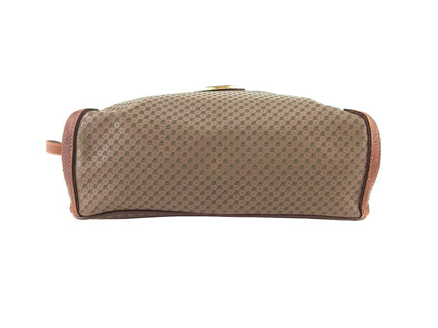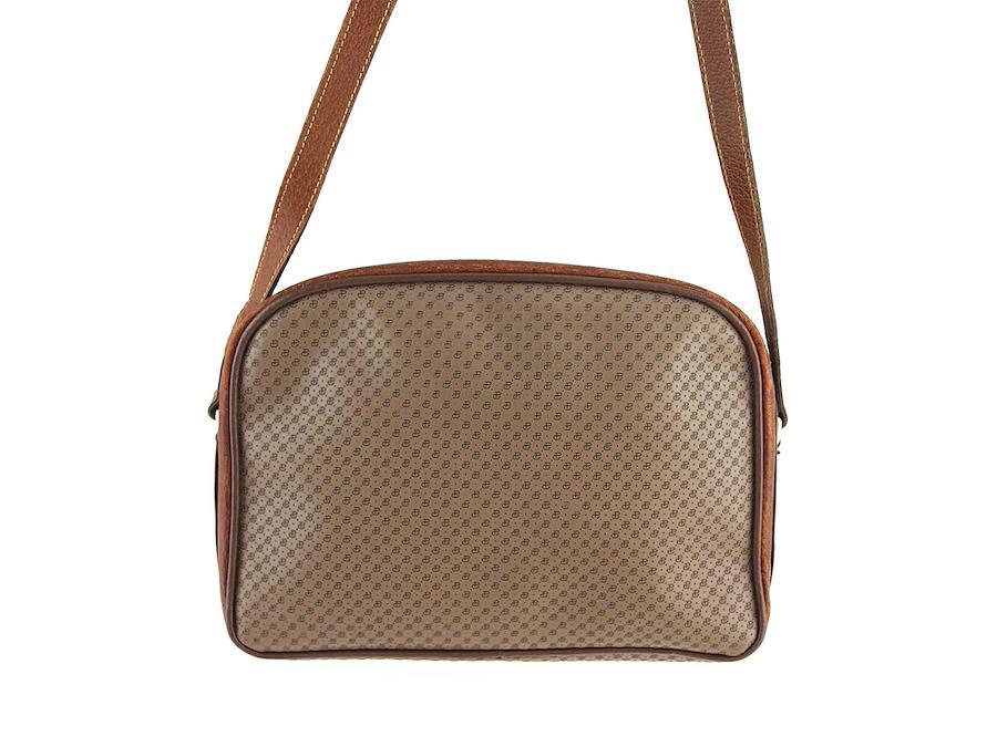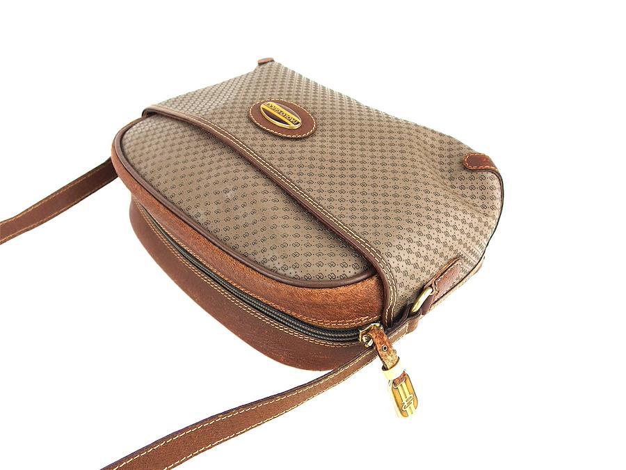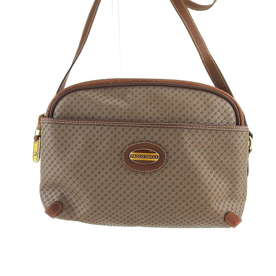 Old Gucci shoulder bag with logo plate, gray, brown, gold, women's, pre-owned